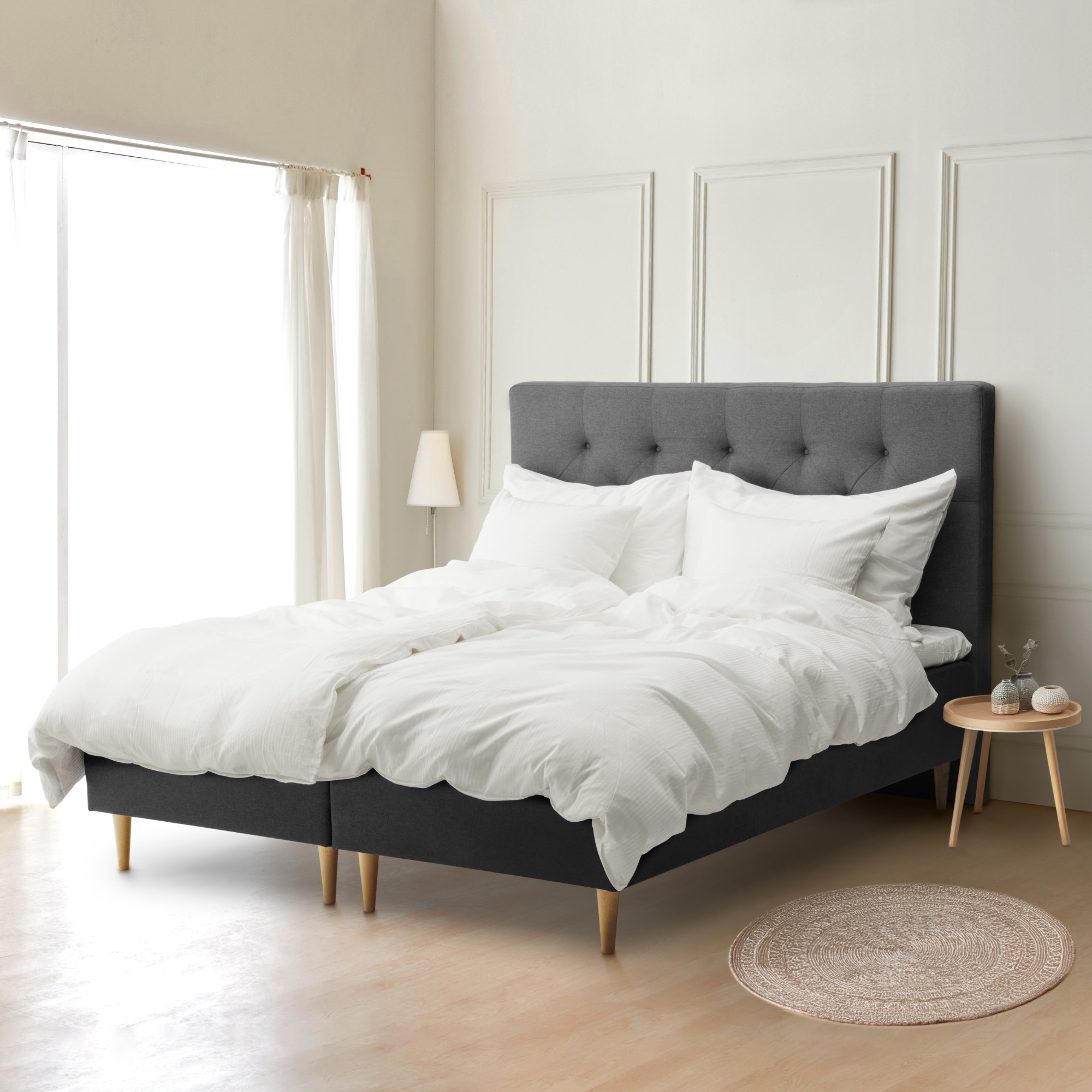 Forside » Senge » Boxmadrasser » Boxmadrasser 180x200 cm Boxmadras 180x200 cm - 7 zoners madras Inkl. topmadras & ben - Højeste komfort - Excellent Fås i flere farver Spar63% Nordstrand Home Lev.: 1-5 hverdage På lager Trustpilot Vælg farve Antal Lys grå (0,00) Grå (0,00) Sand (0,00) Vælg topmadras Naturlatex topmadras - 180x200 cm - 5 cm høj ... (2.200,00) Naturlatex topmadras - 180x200 cm - 7 cm høj ... (2.500,00) Topmadras - 180x200 cm 5 cm høj - NASA Memory... (700,00) Topmadras 180x200 cm - Basis purskum topmadra... (0,00) Topmadras - 180x200 cm 5 cm høj - NASA Memory... (500,00) Vælg ben Metal ben til madrasser - 18 cm - Metal ben t... (0,00) Metal ben til madrasser - 23 cm - Metal ben t... (200,00) Metal ben til madrasser - 18 cm - Champagne f... (400,00) Metal ben til madrasser - 15 cm - Champagne f... (200,00) Sorte ben til madrasser - 20 cm - Sorte træ b... (400,00) Træ ben til madrasser - 15 cm - Ege træs ben ... (400,00) Træ ben til madrasser - 20 cm - Ege træs ben... (400,00) Vælg gavl Ingen Senge gavl 180 cm - Harlequin - Gavl til Nord... (4.299,95) Senge gavl 180 cm - Knapper - Gavl til Nordst... (4.799,95) Senge gavl 180 cm - Square - Gavl til Nordstr... (2.699,95) Vælg rullemadras Ingen Bambus rullemadras - 180x200 cm - Allergivenl... (599,00) Rullemadras - 180x200 cm - Kogeægte - Borg Li... (449,00) Temperaturregulerende rullemadras - 180x200 c... (699,00) Vælg lagen Ingen Boxlagen 180x200 cm - 100% Økologisk bomuldss... (349,00) Boxlagen 180x200 cm - 100% Økologisk bomuldss... (349,00) Kuvertlagen 180x200x8 cm - 100% Økologisk bom... (349,00) Kuvertlagen 180x200x8 cm - 100% Økologisk bom... (349,00) Levering Levering til kantsten (0,00) Boxmadras 180x200 cm - 7 zoners madras Inkl. topmadras & ben - Højeste komfort - Excellent DKK Se mere fra: Nordstrand Home Artikelnummer: EX-BOX-180 Læs vores sengeguide Se vores store udvalg af rullemadrasser 180x200 Se vores store udvalg af topmadrasser 180x200 Har du spørgsmål til produktet? Base med 7 zoner Vores bedste boxmadras Komplet seng inkl. topmadras 110 dages gratis prøveperiode Levering: 1-2 hverdage – mulighed for selv at vælge leveringsdato Størrelse: 180x200 cm Type: Boxmadras: 2 lag - 7 zoners Model: Excellent Fasthed: Medium Betræk: Slidstærkt møbelbetræk Betræk slidstyrke: 50.000 martindale Farve: Valgfrit Fjedertype: 2 x Pocketfjedre i 7 individuelle zoner Fjedre/m2: 2 x 253 stk. Basens højde: 30 cm Ben: Stålben 18 cm - Tilvalg muligt Topmadras højde: 4 cm - Tilvalg muligt Total højde uden ben: 34 cm Total højde med 18 cm. ben: 52 cm Brand: Nordstrand Home Garanti: 10 års garanti på stel og fjedre Excellent: Komplet boxmadras i 2 lag og 7 zoner. Sengen kommer inkl. sengeben og 4 cm. topmadras. Certificering: STANDARD 100 by OEKO-TEX® Se alle vores boxmadrasser i 180x200 cm her Hvad er en boxmadras? Boxmadrasser er en enkel og prisvenlig sengeløsning. Selve madrassen er indbygget i en solid træramme beklædt med stof. Skal blot påsættes sengeben for at være klar til brug. Excellent boxmadras Boxmadrassen: Vores Excellent boxmadras er vores absolut bedste base med 2 x pocketfjedre inddelt i 7 zoner. En 7-zoners madras er opdelt i syv forskellige zoner, der er designet til at støtte de forskellige dele af kroppen. 2 lag pocketfjedre betyder at madrassen indeholder to lag af individuelt indpakkede pocketfjedre. Disse fjedre er hver især syet ind i stofposer eller lommer, hvilket giver dem mulighed for at arbejde uafhængigt af hinanden. Topmadrassen: En standard 4 cm purskums topmadras, med aftageligt og vaskbart betræk. Komplet seng - hvad følger med: Topmadras 4 cm - Andre tilvalg mulige Boxmadras 30 cm Standard ben 18 cm - Andre tilvalg mulige Tilkøb: Sengegavl Info Sengen på 180x200 cm leveres som 2x90 cm. Fjedring Bonellfjedre – Elastisk og fast komfort med en naturlig bounce. Pocket fjedre – Individuelt indpakkede fjedre, der giver målrettet støtte. Ønsker du ekstra luksus? Opgrader din boxmadras med en springmadras oplev følesen af luksus og vil være oplagt til dig der ønsker en ergonomisk seng. Med en springmadras har du mulighed for at kombinere din seng så den passer præcis til dine behov og ønsker. En springmadras placeres normalt på et sengestel eller en solid base som f.eks. direkte oven på din boxmadras. Se alle vores springmadrasser her Se alle vores kontinentalsenge her Topmadras – For ekstra komfort En topmadras beskytter din madras og forbedrer din komfort. De mest populære valg: Memoryskum topmadras – Former sig efter kroppen og reducerer trykpunkter. Latex topmadras – Åndbar og elastisk, perfekt til varme nætter. Kølende gel topmadras – Holder dig frisk og komfortabel hele natten. Anbefalinger: Se alle vores topmadrasser her Anbefaling Vi anbefaler altid at anvende en rullemadras ovenpå den faste madras/topmadras. En rullemadras fungerer som en beskyttende barriere mellem dig og madrassen. Ved at beskytte madrassen mod urenheder og slidtage, forlænger du madrassens levetid. Vedligeholdelse af din seng Vend din madras regelmæssigt for at sikre jævn slitage. Brug en rullemadras for at beskytte din madras mod sved og snavs. Støvsug din seng jævnligt for at reducere støvmider og allergener. 110 dages prøveperiode på senge Hos HOME-TEX kan du trygt købe din nye seng med 110 dages prøveperiode. Vi ved, at det tager tid at vænne sig til en ny seng, og derfor får du muligheden for at teste den hjemme i rolige omgivelser. Prøv sengen i op til 110 dage Returnér, hvis den ikke passer til dig Nemt & enkelt – vi hjælper dig hele vejen Hvis du ikke er tilfreds med din nye seng, kan du returnere den igen. Vi ønsker, at du får den bedste nattesøvn – og det kræver den rette seng! Med Nordstrand Home er du sikret boligtekstiler i dansk design - i nordisk stil. Nordstrand Home lægger stor vægt på følelsen af velvære i et flot, men samtidig, afslappende miljø. Med Nordstrand Home behøver du ikke gå p