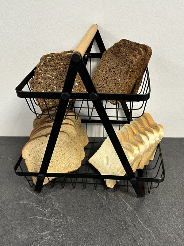 Forside » Indretning » Til bordet » Køkkenet Brødkurv - Sort trådkurv med træhank - 31x20x31 cm - Trendy opbevaring til hjemmet Spar62% Home-tex 199,9575,00DKKSpar 125,- På lager Trustpilot Antal Læg i kurv Se mere fra: Home-tex Artikelnummer: PR794 Har du spørgsmål til produktet? Elegant trådkurvMåler: 31x20x31 cmBærehanke i træ Materiale: Metal og træ Mål: 31x20x31 cm Farve: Sort Moderne opbevaringDenne elegante trådkurv er et stilfuldt og funktionelt valg til dit hjem. Med to etager og en solid træhank er kurven både praktisk og let at flytte rundt. Den kan rumme alt fra frugt og brød i køkkenet til klude og sæber på badeværelset.Denne trådkurv er designet med øje for detaljen, og den sorte farve tilføjer et moderne og tidløst touch til enhver indretning.Praktiske materialerMetal er et robust og holdbart materiale, hvilket gør det ideelt til opbevaring. Det er let at rengøre og vedligeholde, og det giver et moderne og industrielt look. Desuden er metal et meget fleksibelt materiale, der kan formes til mange forskellige former og designs. Træhanken er ikke kun et æstetisk tiltag, men også en praktisk løsning. Den gør det let at flytte kurven rundt, selv når den er fyldt. Træ er et varmt og naturligt materiale, der tilføjer en hyggelig og hjemlig atmosfære til dit hjem. Tilbage til Køkkenet