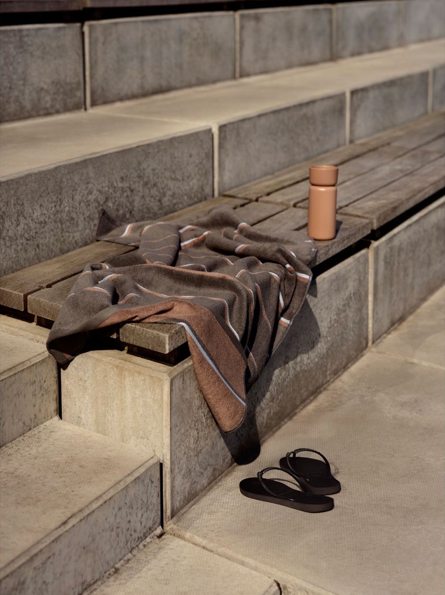 Forside » Oversættelse færdig Brunt Badehåndklæde - 70x140 cm - Zone Denmark - Sauna Zone Skarp pris: 299,95DKK På lager Trustpilot Antal Læg i kurv Se mere fra: Zone Artikelnummer: 37614-4 Se vores store udvalg af bademåtter til gulvet Se vores udvalg af håndklæderpakker Se vores store udvalg af badekåber til hele familien Har du spørgsmål til produktet? Størrelse: 70x140 cm Type: Badehåndklæde Vægt: 600 gram/m2 Kvalitet: 100% bomuld Farve: Brun Brand: Zone Denmark Serie: Sauna Strop til ophæng: Ja, top Vask: 60° Tørretumbling: Ja Certificering: STANDARD 100 by OEKO-TEX® (2668CIT CITEVE). Din garanti for at produktet er fri for sundhedsskadelig kemi. Sauna er navnet – og striberne taler for sig selv. Serien er inspireret af de stramme linjer i en klassisk træbeklædt sauna, hvor designet leger elegant med perspektiv og farvebalance. Hver side af håndklædet fremhæver sin egen dominerende farve - en fin detalje, der giver dig to forskellige udtryk i ét og samme håndklædeDe retroinspirerede striber tilføjer et grafisk, urbant touch, og med en blød, kraftig kvalitet i garnfarvet 600 grams bomuld, føles håndklædet lige så lækkert, som det ser ud.Vælg mellem 50 x 100 og 70 x 140 cm – og lad Sauna sætte sit grafiske, farverige præg på dit badeværelse. Tilbage til Oversættelse færdig
