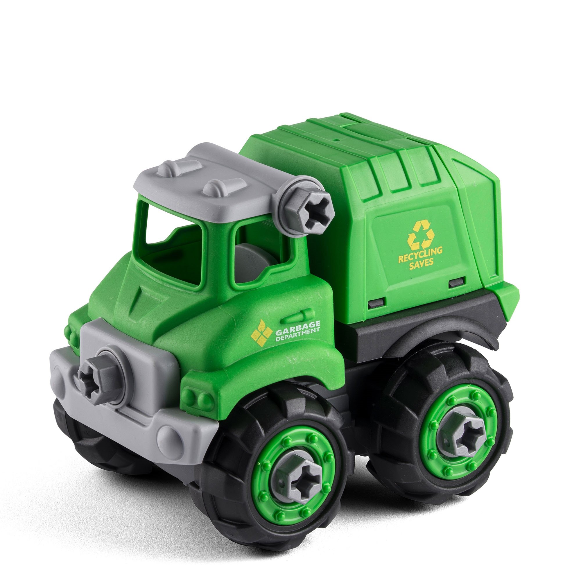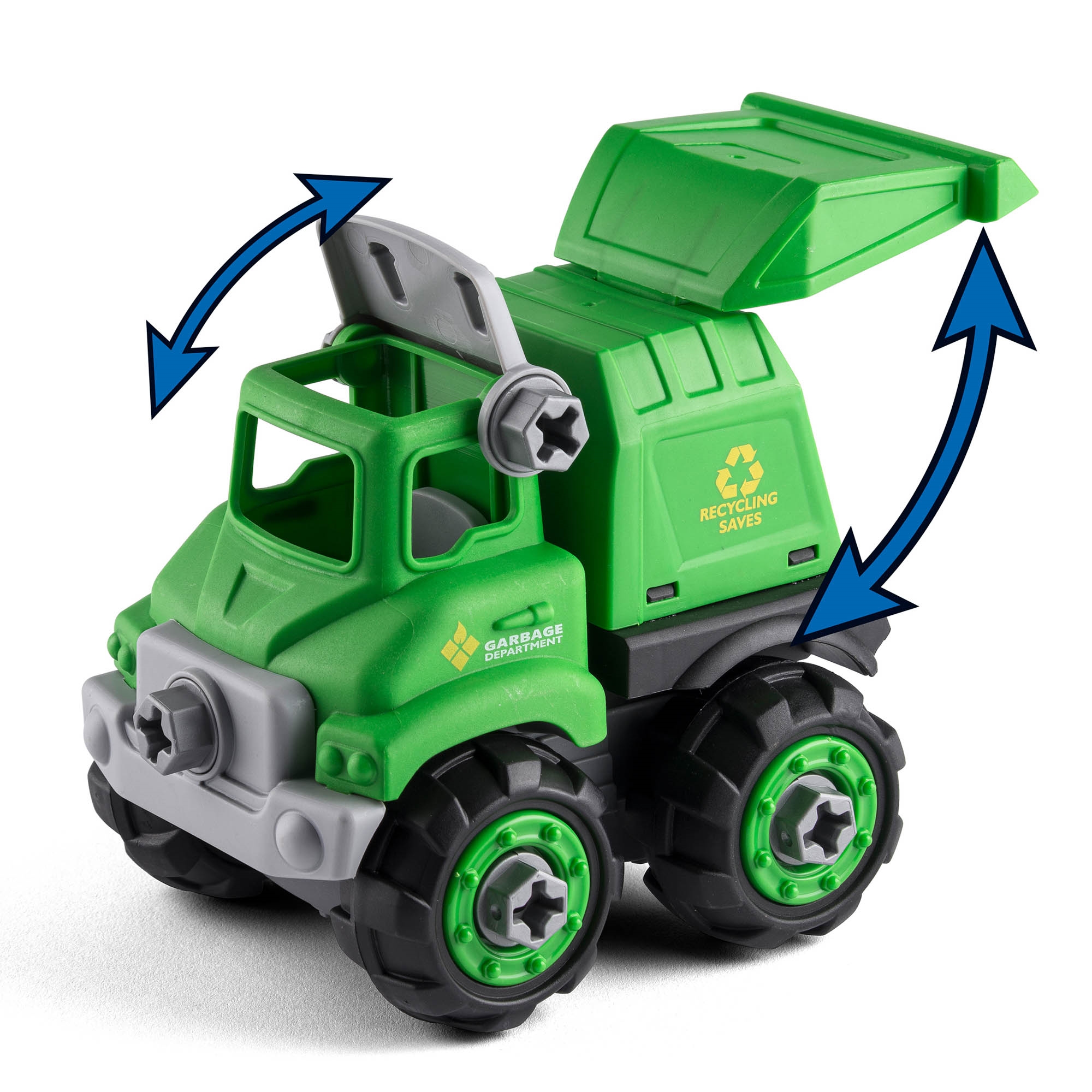 Skraldebilen kan skilles ad og samles igen, så barnet lærer, hvordan køretøjet er bygget op. Sættet inkluderer en elektrisk skruetrækker, så barnet nemt kan skrue delene af og samle bilen igen, hvilket styrker både finmotorik og forståelse for mekanik.
