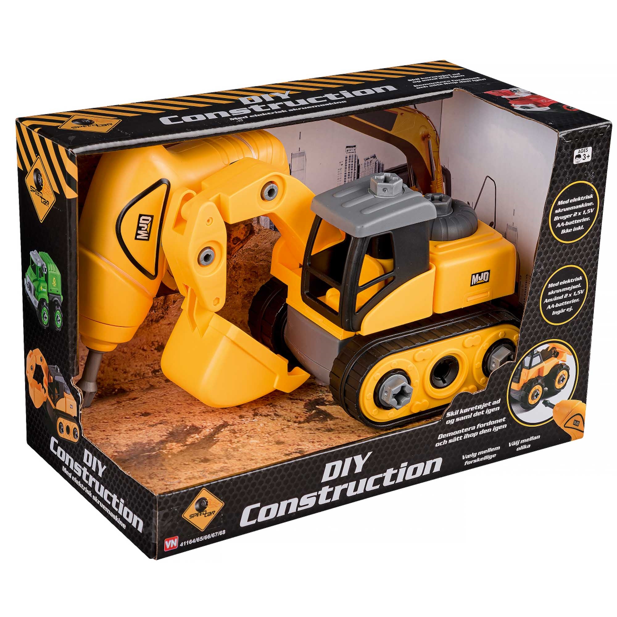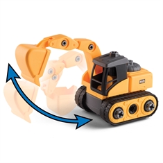 Gravemaskinen kan skilles ad og samles igen, så barnet lærer, hvordan køretøjet er bygget op. Sættet inkluderer en elektrisk skruetrækker, så barnet nemt kan skrue delene af og samle bilen igen, hvilket styrker både finmotorik og forståelse for mekanik.