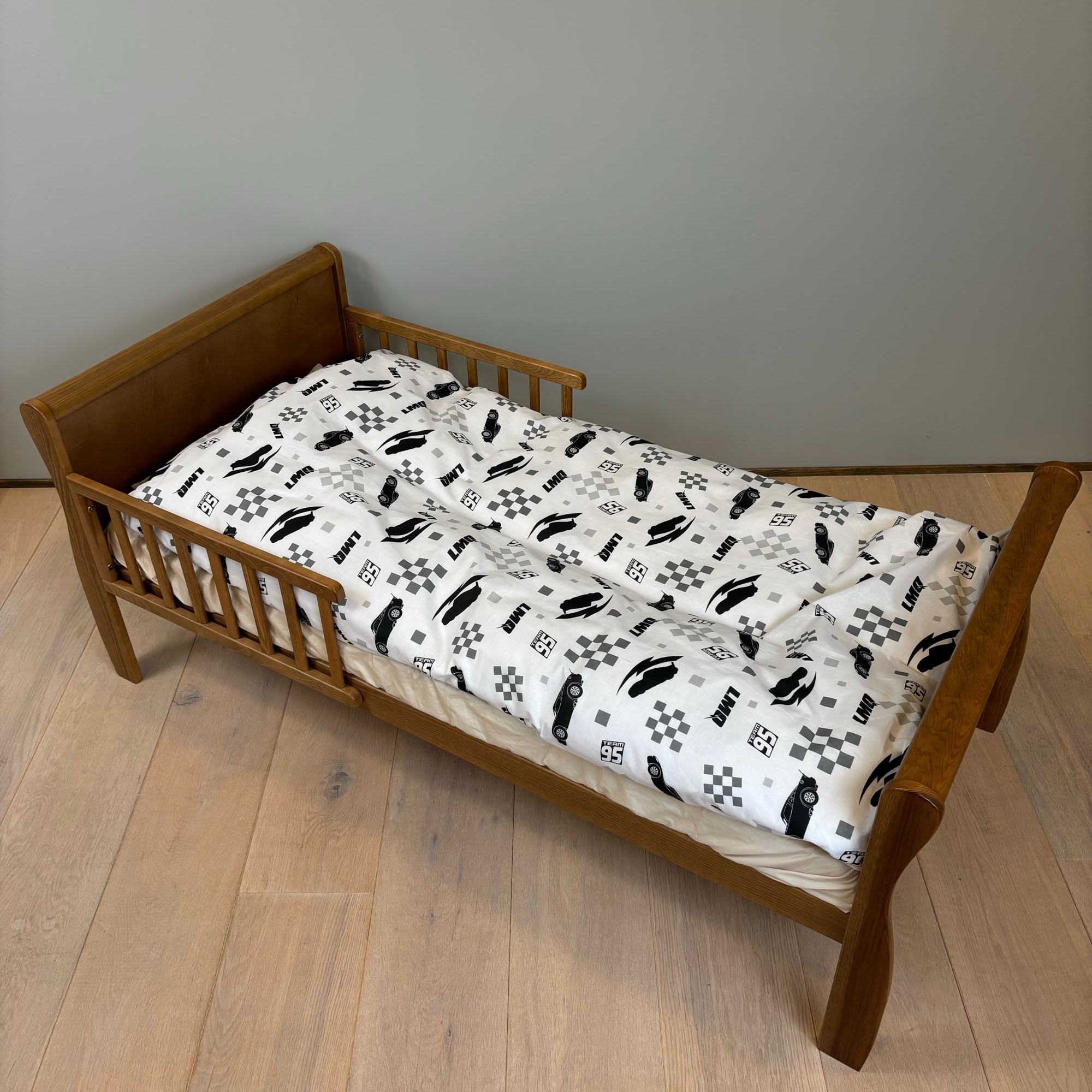 Forside » Sengetøj » Børne sengetøj » Junior sengetøj 100x140 cm Cars sengetøj 100x140 cm - Gråt junior sengesæt med Lynet McQueen - Vendbart motiv - 100% bomulds sengelinned Licens 149,95DKK På lager Trustpilot Antal Læg i kurv Se mere fra: Licens Artikelnummer: 1936-8 Læs vores sengetøjsguide Se vores store udvalg af lagner Se vores store udvalg af dyner 140x200 Har du spørgsmål til produktet? Blødt & åndbart100% blød bomuldOEKO-TEX® certificeret Dynebetræk: 100x140 cm - junior sengesæt Pudebetræk: 40x45 cm Materiale: 100% blød bomuld Farve: Rød og grå Motiv: Lynet McQueen Design: Vendbart - Forside med motiv af Lynet McQueen, bagside med små motiver Lukning: Dyne med knapper og pudebetræk med overlap Vask: 60° Tørretumbling: Ja Tåler strygning: Ja Certificering: STANDARD 100 by OEKO-TEX® (2011PK0073 AITEX). Din garanti for at produktet er fri for sundhedsskadelige stoffer. Blødt junior sengetøj i 100% bomuld, med et smart og genkendeligt design af den røde racerbil Lynet McQueen. Produceret med lette og åndbare bomuldsfibre giver en sengesættet en følelse af blødhed, som gør at dynen vil falde natuligt rundt om dit barn. Balancen i naturlig komfort fra det bløde materiale og det hyggelige Cars design, gør dette sæt til en sikker favorit hos dit barn. Gør sengetid til dagens højdepunkt med dette Lynet McQueen junior sengetøj i 100% bomuld. Det bløde bomuldsstof sikrer en behagelig og tryg nattesøvn med masser af komfort. Materialet er åndbart, slidstærkt og holder farverne flotte, selv efter mange vaske. Sengetøjet er OEKO-TEX® certificeret, hvilket betyder, at det er fri for skadelige stoffer og derfor helt sikkert for børn at sove med. Perfekt til små racerkørere, der elsker det populære Cars-univers. Sengetøjet er vendbart, hvor forsiden er med den røde racerbil Lynet McQueen og bagsiden er små motiver af biler. Sengetøjet er velegnet til daglig brug, da det er nemt at vaske og tåler 60°. Uden behov for strygning bevarer det sin blødhed og farve, selv efter flere vaske. Se vores store udvalg af Cars produkter til børneuniverset For barnet bør sengen være et trygt sted og alle elementerne skal til sammen skabe bløde og dejlige omgivelser for barnet at finde ro i. Brug derfor gerne barnets interesser, til at skabe et trygt soverum for barnet. Hos os kan du finde et stort udvalg af tilbehør til sengen og børneværelset, lige fra lagner til dyner, puder, sengetøj og meget mere, og massere af produkter med alle børnenes favoritter på. Alt sammen elementer som kan være med til at skabe det rette sove miljø og værelse til dit barn. Her kan du finde lækre og bløde kvalitets lagner Tilbage til Junior sengetøj 100x140 cm
