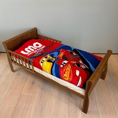 Forside » Sengetøj » Børne sengetøj » Junior sengetøj 100x140 cm Cars sengetøj - 100x140 cm - Junior sengesæt med Lynet McQueen - Vendbart motiv - 100% bomulds sengelinned Spar19% Licens 179,95145,00DKKSpar 35,- På lager Trustpilot Antal Læg i kurv Se mere fra: Licens Artikelnummer: 1868-8 Læs vores sengetøjsguide Se vores store udvalg af lagner Se vores store udvalg af dyner 140x200 Har du spørgsmål til produktet? 100% blød bomuldBlødt, åndbart og holdbartOEKO-TEX® certificeret Dynebetræk: 100x140 cm - junior sengesæt Pudebetræk: 40x45 cm Materiale: 100% blød bomuld Farve: Rød Motiv: Lynet McQueen Design: Vendbart - Forside med motiv af Lynet McQueen, bagside med små motiver og tekst Lukning: Dyne med knapper og pudebetræk med overlap Vask: 60° Tørretumbling: Ja Tåler strygning: Ja Certificering: STANDARD 100 by OEKO-TEX® (11-26090 Shirley). Din garanti for at produktet er fri for sundhedsskadelig kemi. Blødt sengetøj i 100% bomuld, med design af Lynet McQueen. Produceret med lette og åndbare bomuldstråde som giver sengesættet en følelse af blødhed, der gør at dynen føles dejlig for dit barn at sove med. Balancen i naturlig egenskaber og komfort fra det bløde materiale, kombineret med det hyggelige design, gør dette sæt til en sikker favorit hos dit barn. Gør sengetid til dagens højdepunkt med dette seje Lynet McQueen sengetøj i 100% bomuld. Perfekt til små racerkørere, der elsker det populære Cars-univers. Sengetøjet er med den ikoniske røde racerbil Lynet McQueen, som vil vække begejstring hos enhver lille fan. Det bløde bomuldsstof sikrer en behagelig og tryg nattesøvn med masser af komfort. Materialet er åndbart, slidstærkt og holder farverne flotte, selv efter mange vaske. Sengetøjet er OEKO-TEX® certificeret, hvilket betyder, at det er fri for skadelige stoffer og derfor helt sikkert for børn at sove med. Se vores store udvalg af Cars produkter til børneuniverset For barnet bør sengen være et trygt sted og alle elementerne skal til sammen skabe bløde og dejlige omgivelser for barnet at finde ro i. Brug derfor gerne barnets interesser, til at skabe et trygt soverum for barnet. Hos os kan du finde et stort udvalg af tilbehør til sengen og børneværelset, lige fra lagner til dyner, puder, sengetøj og meget mere, og massere af produkter med alle børnenes favoritter på. Alt sammen elementer som kan være med til at skabe det rette sove miljø og værelse til dit barn. Her kan du finde lækre og bløde kvalitets lagner Tilbage til Junior sengetøj 100x140 cm