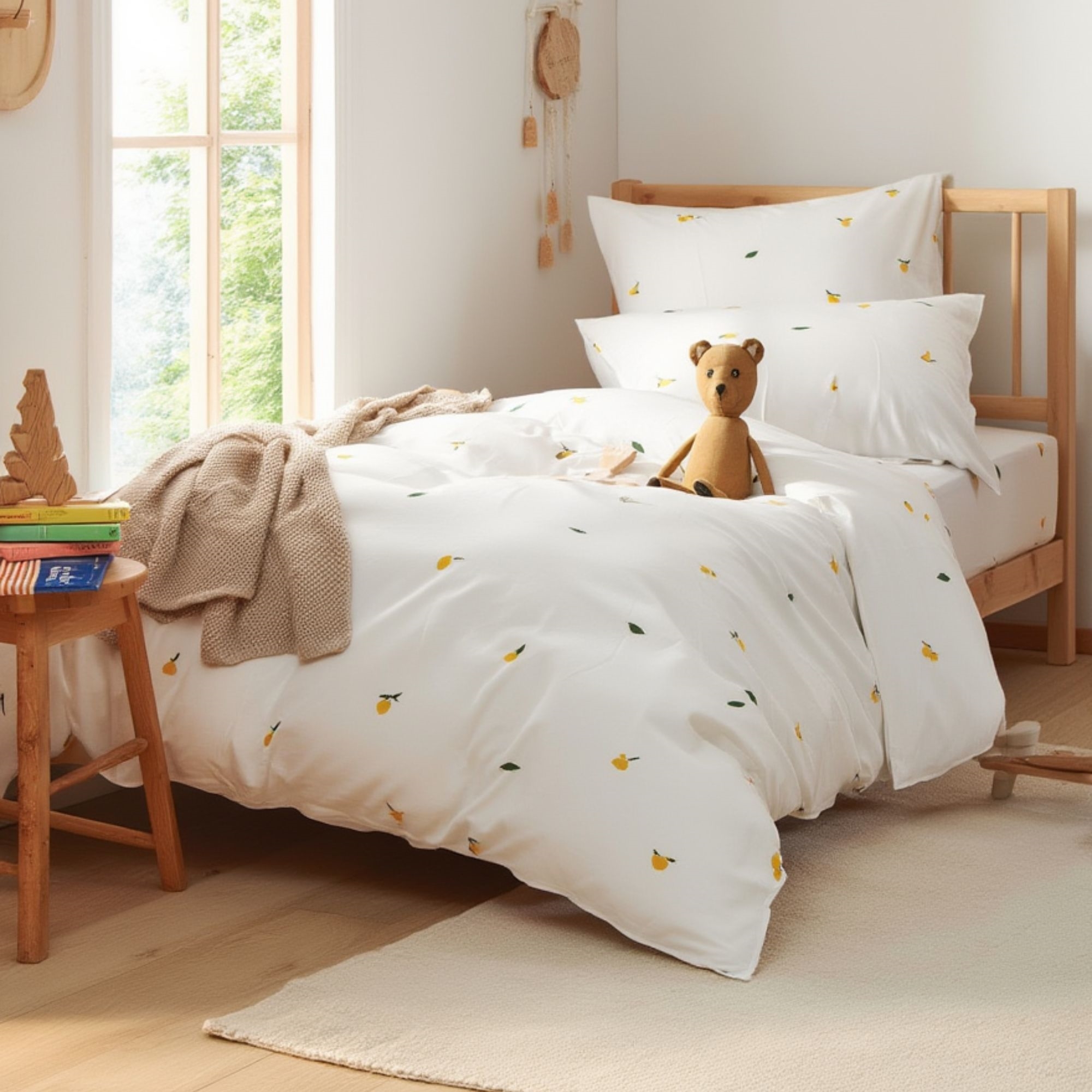 Skab en lys og rolig stemning på børneværelset med dette fine baby sengetøj fra By Mats i en varm beige nuance med små, dekorative citroner. Det enkle og nordiske design giver et blødt og harmonisk udtryk, som passer smukt ind i både moderne og klassiske indretninger.