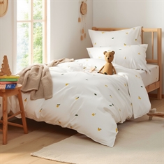 Sengesættet er fremstillet i 100% blød bomuld, som er åndbart og skånsomt mod babyens sarte hud. Bomuldens naturlige egenskaber hjælper med at regulere temperaturen gennem natten, så din baby får en tryg, komfortabel og rolig søvn – hele året rundt.