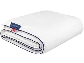 Den førende leverandør af danske silkedyner - Nordic ComfortNordic Comfort® er Danmarks mest solgte silkedyne - Det er der selvfølgelig en grund til. Sund søvn er bevist ved forskning – mange tusind familier sover med Nordic Comfort®. Derfor har vi selvfølgelig også sørget for et samarbejde med Nordic Comfort, så du kan finde de lækre silkedyner på shoppen her.At sige at de i Nordic Comfort er lidenskabelige, næsten besat, af dyner, puder og god søvn er måske ikke glamourøst, men det er sandheden. Hver dag sørger de for, at skabe den bedste søvn gennem deres silkedyner og silkepuder. Nordic Comfort® produkter er bygget på nordiske værdier og design. Hvad er silke?Silke er en naturlig proteinfiber, der spindes af trådende omkring pupperne af silkesommerfuglen. Silkekokonen består af en enkelt tråd råsilke, der kan blive op til flere km lang. De er lige så stærke som stål, hvilket gør silke til den stærkeste fibre i verden.Sommerfuglelarven spinder en kokon af silke for at beskytte sig mod kulde, fugt og insekter, mens den forvandles fra små, sårbare larver til fuldvoksne silkesommerfugle. Silke består af to primære proteiner – sericin og fibroin. Hvad er sericin?Sericin er det protein, der omgiver silkefibrene (fibroin), så de hænger sammen, når sommerfuglelarven spinder dem til en kokon. Sericin har også den anti-bakterielle egenskab at beskytte silkelarven mod bakterier og andre trusler.Hvad er fibroin?Fibroin er selve silkefiberen. Det er fibroin, der anvendes til silkegarn, silkestof og silkefyld i silkedyner og -puder. Fibroin er også isolerende og fugtabsorberende.Hvad betyder det, at sericin er anti-bakteriel?Det betyder, at sericin har den naturlige egenskab, at den dræber og hæmmer bakterievækst. Almindelige bakterier såsom escherichia coli og staphylococcus aureus reduceres aktivt i nærheden af sericin.Sericin også mod støvmider?Ja, sericin virker også mod støvmider. Ifølge laboratorietests foretaget af Airmid Health Group Ltd. på vegne af Nordic Comfort® udviser sericin-behandlede SilkFX®-fibre en reduktion af levende støvmider på 58% efter kun otte uger sammenlignet med gåsedun. Ved afslutningen af testen havde gåsedun dobbelt så store mængder (134%) af støvmider, hvilket gør gåsedun til et mindre velegnet valg for mennesker med støvmideallergi.Har alle silkedyner anti-bakterielle og støvmideafvisende egenskaber?Nej. Faktisk har de fleste silkedyner ikke anti-bakterielle og støvmideafvisende egenskaber. Det er kun silkedyner, der er behandlet med sericin, der er aktivt støvmideafvisende og hæmmer bakterievæksten. Som forbruger er det derfor en god ide at kontrollere oplysningerne fra silkedyneproducenten for at se, om det rent faktisk er klinisk bevist, at produkterne er støvmideafvisende og anti-bakterielle, eller om producenten bare kommer med ikke-understøttede påstande i salgsmæssigt øjemed.Hvor stammer silke fra?Silke stammer fra Kina, som har opfundet processen til fremstilling af silke. De har fremstillet silke i over 5.000 år og er i dag verdens største producent af silke i høj kvalitet.Som en gammel kinesisk legende fortæller, sad kejserinden LI-Ling for ca. 5000 år siden under et morbærtræ, da en silkesommerfuglekokon dumpede ned i hendes te fra træet ovenover. Da hun fiskede kokonen op, viklede der sig en fin tråd om hendes finger. Det blev starten på, at kvinder holdt silkelarver, som husdyr, og LI-Ling (som kejserinden hed) blev siden omtalt silkelarvens frue. Silke blev hurtigt en eftertragtet luksusvare. I de næste 3000 år havde kineserne monopol på denne viden, nogle hundrede år før kristus åbnede "silkevejen" der var en karavanerute der strakte sig fra Xian i Kina til Syrien. Silken blev handlet langs vejen, og fandt til sidst vej til Europa. Her blev det en eftertragtet handelsvare på lige fod med guld. I dag er Mulberry silke fra Kina kendt og værdsat over hele verden. Lange og korte silkefibreLange silkefibre vil være at foretrække, da disse er langt bedre til at temperaturregulere og svedtransportere end kortfibret silkedyner er. Derudover vil man også opleve, at en langfibret silkedyne kan virke mere fyldig end den kortfibret silkedyne.Hvis du vil opnå den fulde effekt af silken, skal du derfor vælge en silkedyne med lange fibre. Kortfibret silkedyner vil dog stadigvæk temperaturregulere og svedtransportere, og har ligeledes de antibakterielle egenskaber som det også ses i de dyrere langfibret silkedyner. Hvorfor vælge en silkedyne frem for en dundyne?Silke og dun har vidt forskellige egenskaber, og om du skal vælge et ene eller det andet afhænger af dine personlige præferencer og behov. Vil du gerne blive klogere på duns egenskaber, så tag et kig i vores dyneguide, hvor du kan læse meget mere.Silke har nedenstående egenskaber, som typisk er derfor nogle kunder vælger silke frem for dun.