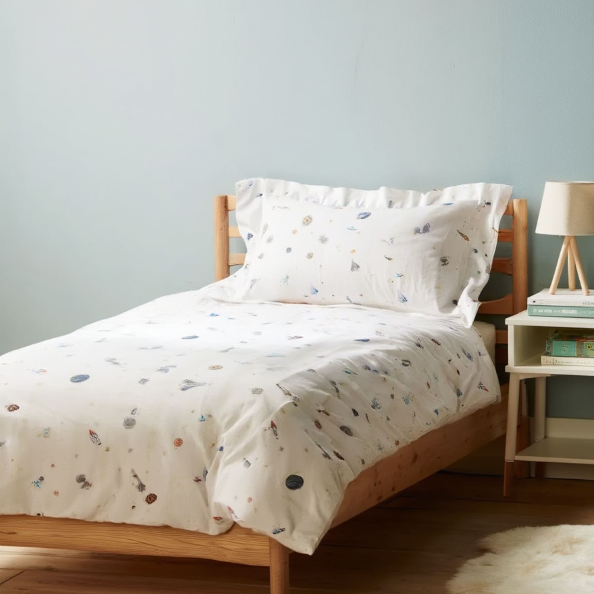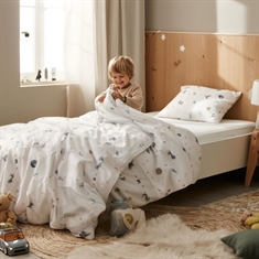 Sengesættet er fremstillet i 100% blød bomuld, som er åndbart og behageligt mod barnets hud. Bomuldens naturlige egenskaber hjælper med at regulere temperaturen i løbet af natten, så dit barn får en komfortabel og rolig søvn - året rundt.