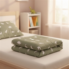 Sengesættet er fremstillet i 100% blød bomuld, som er åndbart og skånsomt mod babyens sarte hud. Bomuldens naturlige egenskaber hjælper med at regulere temperaturen gennem natten, så din baby får en tryg, komfortabel og rolig søvn – hele året rundt.