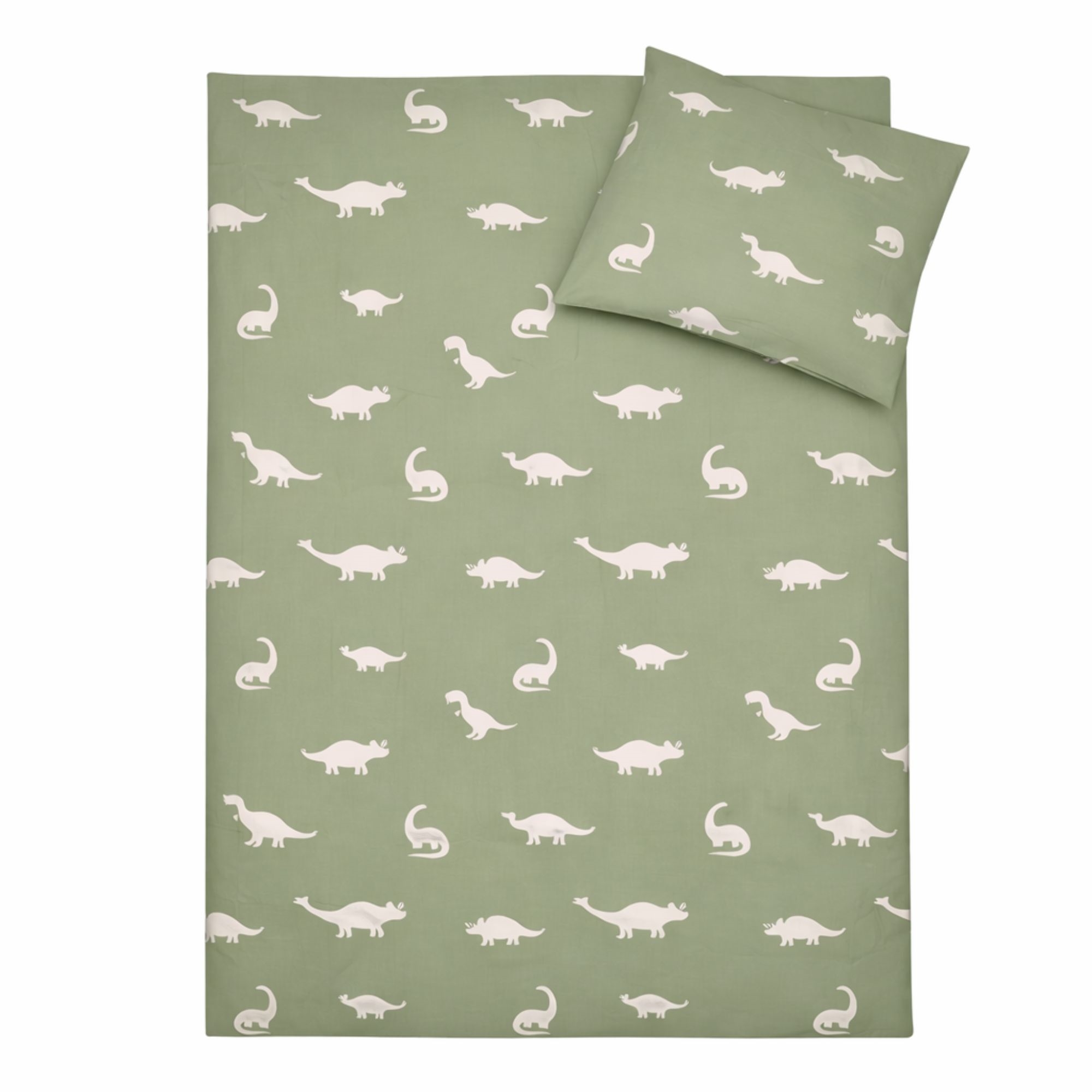 Dinosaurer sengetøj - 100% bomuld - Babysengetøj 70x100 cm - Grønt med dinosaurer