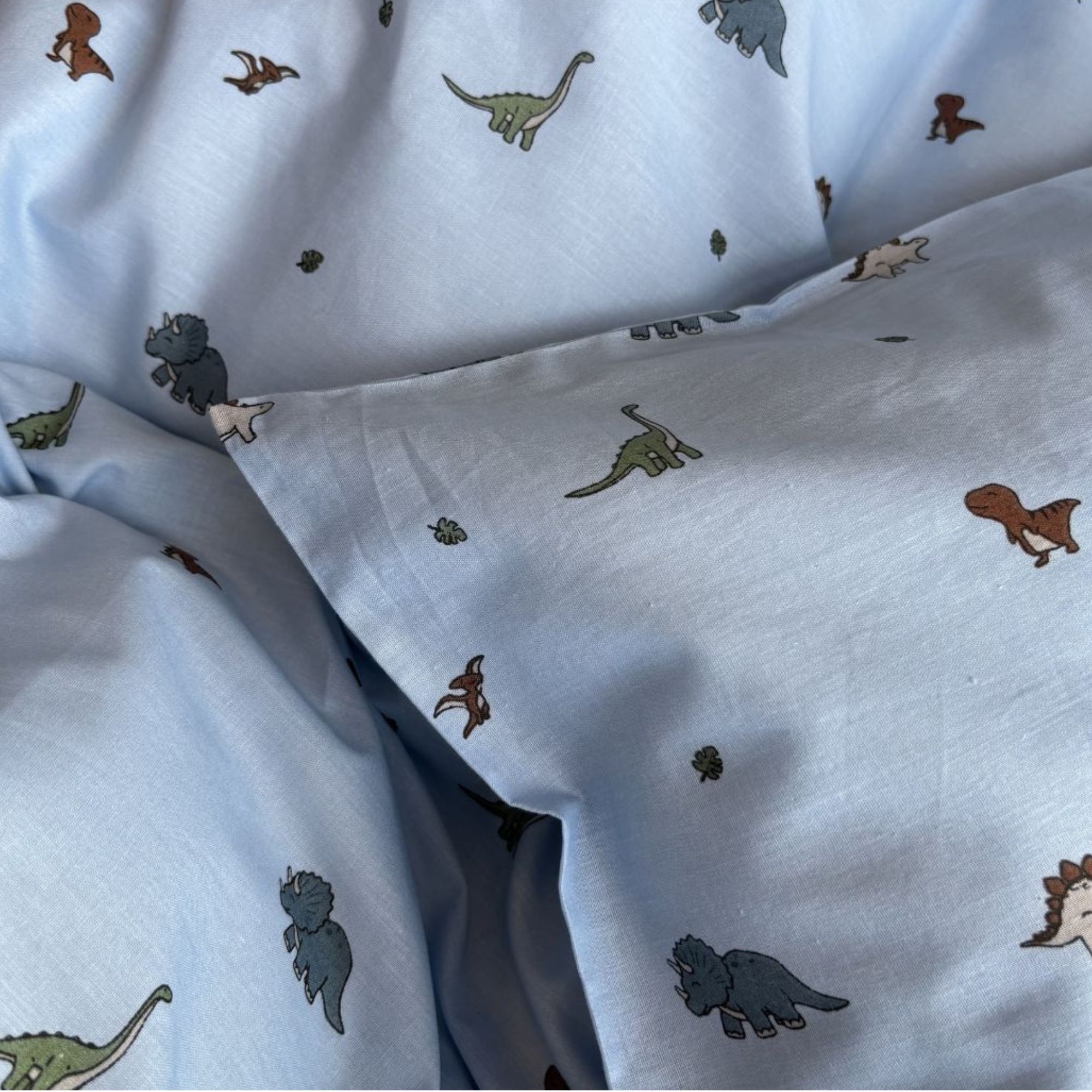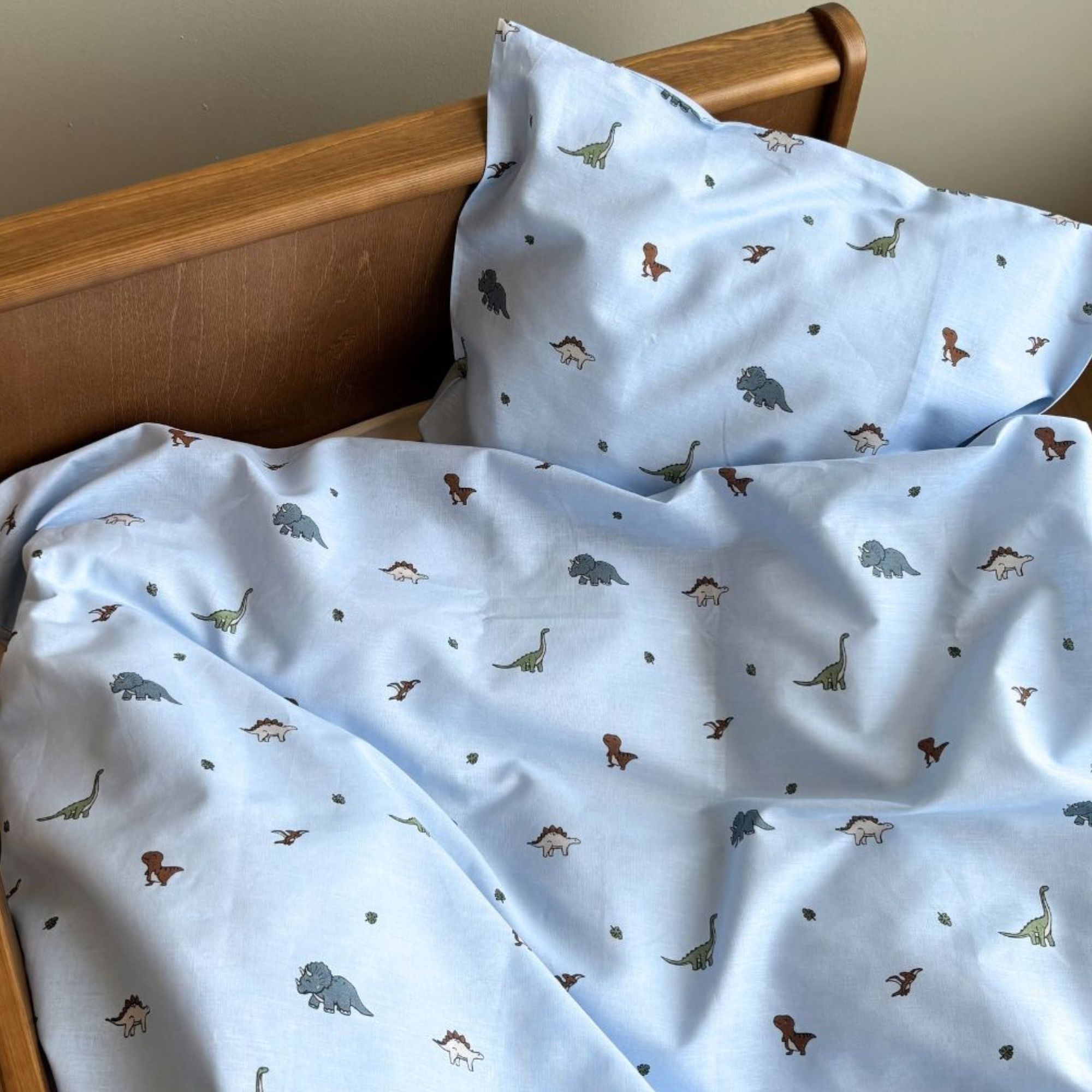 By Mats junior sengetøj 100x140 cm - Blåt med dinosaurer