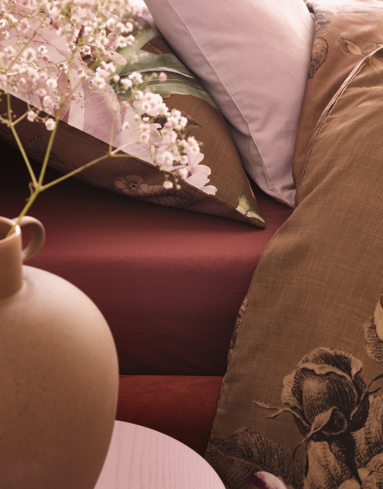 Forside » Sengetøj » Dobbelt sengetøj » Dobbelt sengetøj 200x220 cm Dobbelt blomstret sengetøj 200x220 cm - Aimee Cafe Noir - Vendbart i 100% bomuldssatin - Essenza sengetøj 2 x PudebetrækSpar30% Essenza 1.349,95949,95DKKSpar 400,- Gratis fragt på denne vareFå på lager Trustpilot Antal Læg i kurv Se mere fra: Essenza Artikelnummer: 41675-5 Læs vores sengetøjsguide Se vores store udvalg af lagner Se vores store udvalg af dyner 200x220 Har du spørgsmål til produktet? Blødt og glansfuldt100% bomuldssatinEssenza - Aimee Cafe Noir Dynebetræk: 200x220 cm Pudebetræk: 2 stk. á 60x63 cm Materiale: 100% bomuldssatin Vævning: Ekstra fin 210TC (Thread count = antal tråde pr. kvadrat tomme) Farve: Brunt Design: 2 i 1 - ensfarvet og blomster Brand: Essenza Lukning: Dyne lukkes med knapper og pudebetræk med overlap Vask: 60° Tørretumbling: Ja Tåler strygning: Ja Certificering: STANDARD 100 by OEKO-TEX® (0906030) Sengetøj fra Essenza er fremstillet i 100% luksus bomuldssatin, hvilket giver sengesættet ekstra blødhed med rigtig god slidstyrke. Sengesættet er dobbelt faced dvs. vendbart med forskellige mønstre eller farve på hver side. Dyne lukkes med knapper og pudebetræk med overlap. Køb let pudebetræk til dine ekstra puder her ESSENZA HOME har designet og produceret stilfulde boligtekstiler i næsten 60 år. Virksomheden blev grundlagt i 1961 af Mr. Van Es. ESSENZA er kendt for deres glade og friske designs i et bredt udvalg. Frisk sengen og soveværelset op med et flot og lækkert sæt sengetøj som dette. Benyt samtidig muligheden for at sikre dig maximal sovekomfort, ved at tilføje et nyt blødt lagen af høj kvalitet. Du finder vores store sortiment af kvalitets lagner her Tilbage til Dobbelt sengetøj 200x220 cm