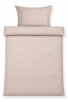 Dyne- og pudebetræk er udstyret med indvendig skjult lynlås, som giver et stilrent udtryk og gør det nemt at skifte sengetøj. Den sandfarvede nuance og det ensfarvede design gør sengesættet let at kombinere med både lyse og mørke elementer i soveværelset.