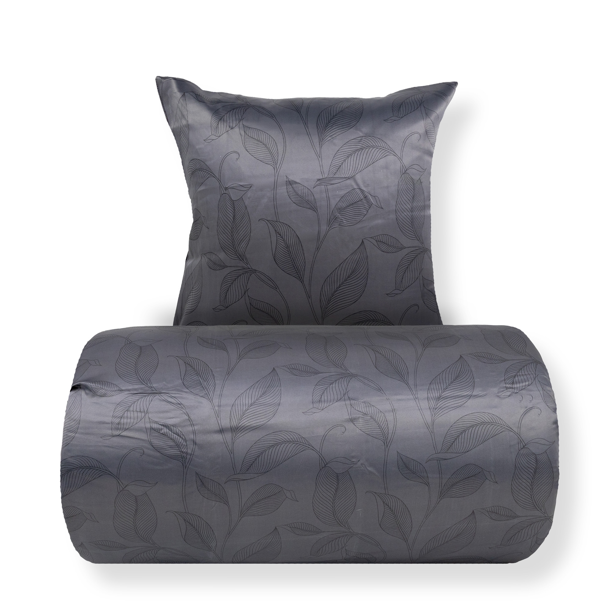 Dobbelt sengetøj 200x200 cm - Satin - Sort print af blade