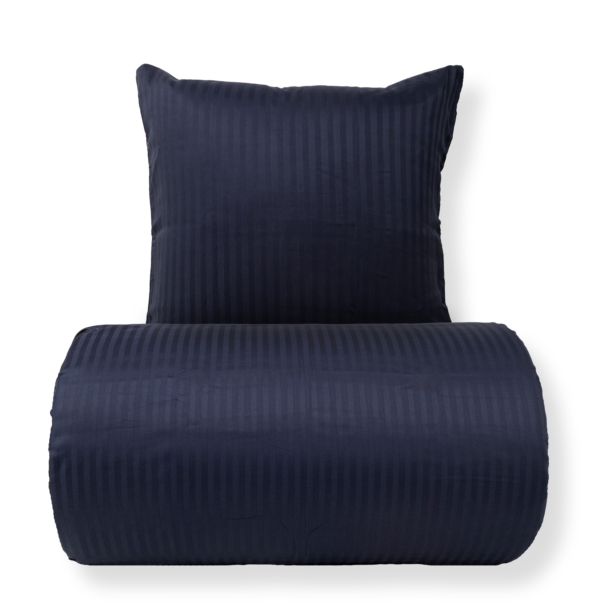 Dobbelt sengetøj 200x220 cm - 100% bomuldssatin - Klassisk mørkeblå striber