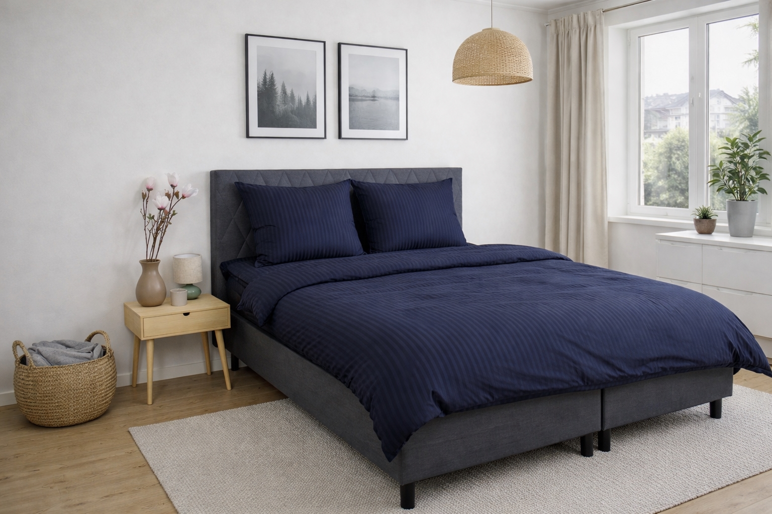 Skab et elegant og eksklusivt udtryk i soveværelset med dette mørkeblå stribet sengetøj i 100% bomuldssatin. Sengetøjet kombinerer klassisk design med høj komfort og er skabt til dig, der ønsker både luksus og funktionalitet i hverdagen.