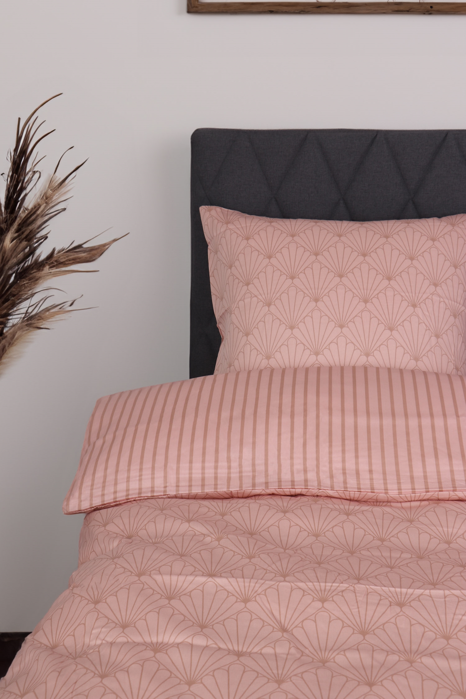 Det vendbare design giver dig to forskellige looks i ét sengesæt. Forsiden har et grafisk design, mens bagsiden er er stribet i en mere afdæmpet stil. Det gør sengetøjet nemt at kombinere med forskellige farver, puder og plaider og giver større fleksibilitet i indretningen.