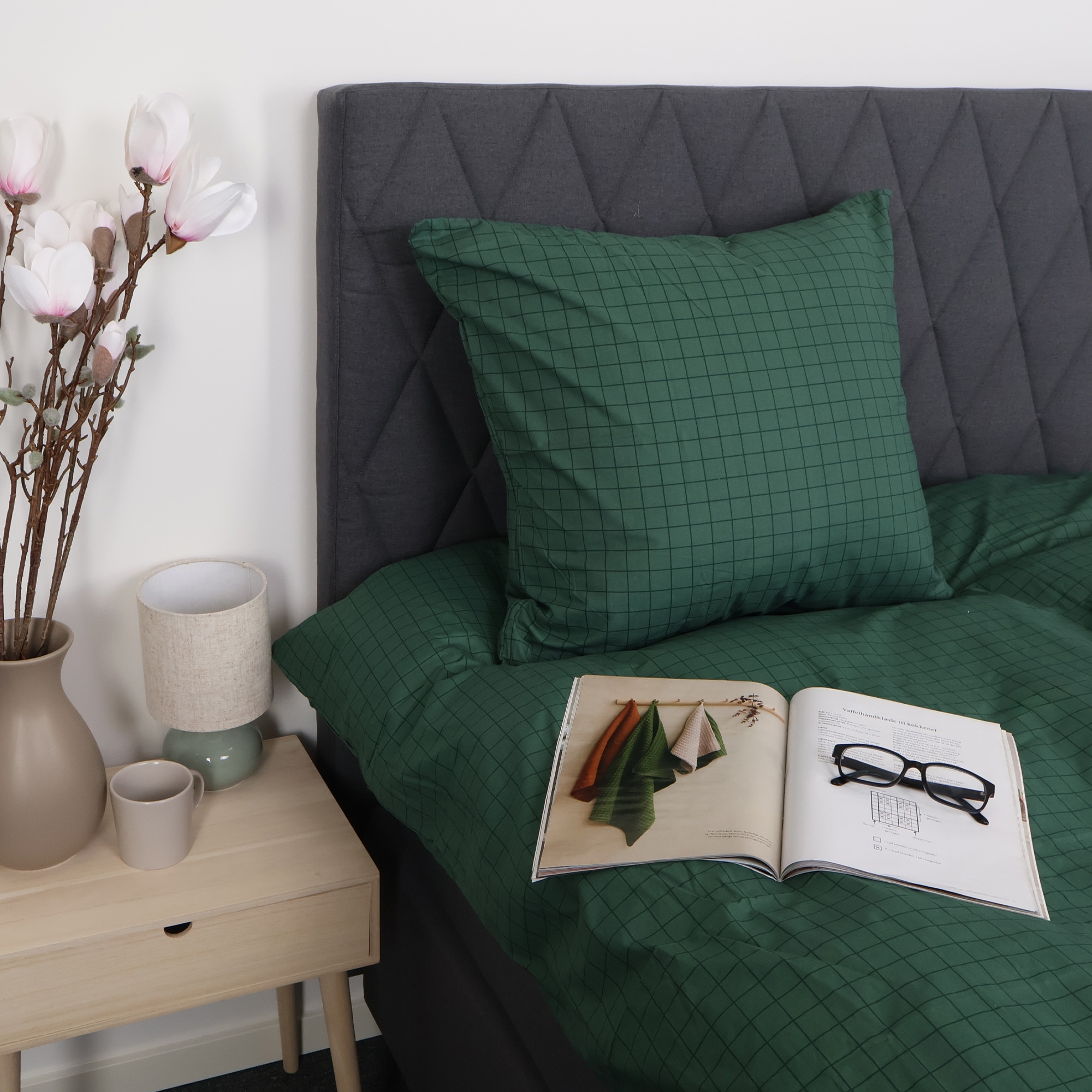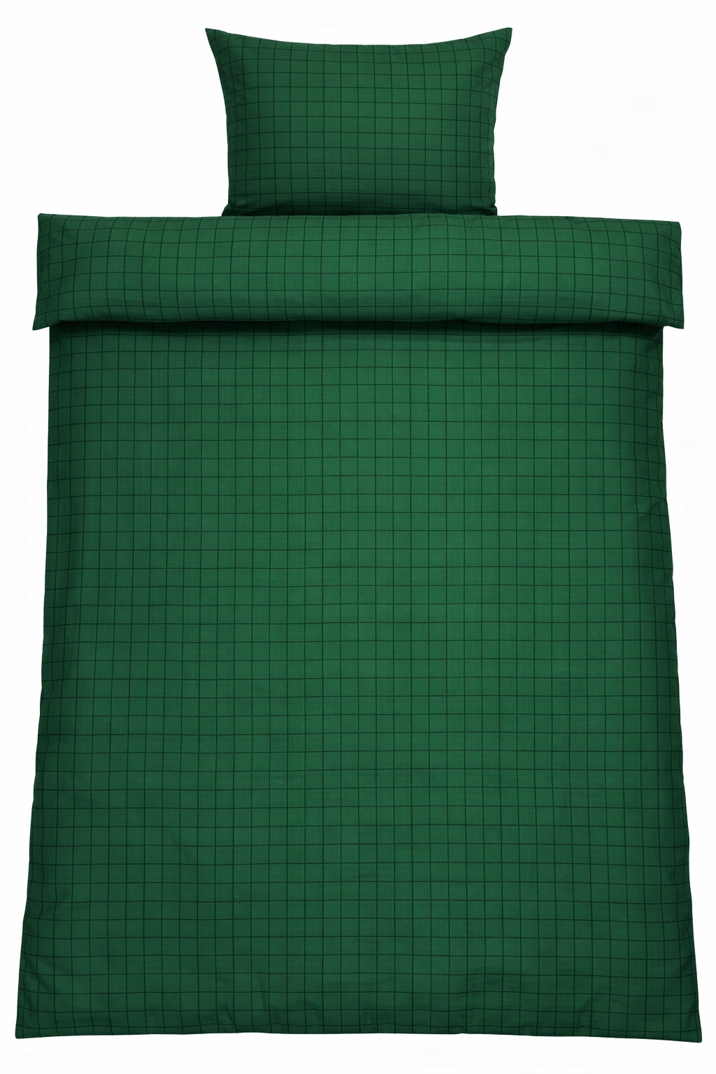 Dobbelt sengetøj i bomuld med grønt ternet design