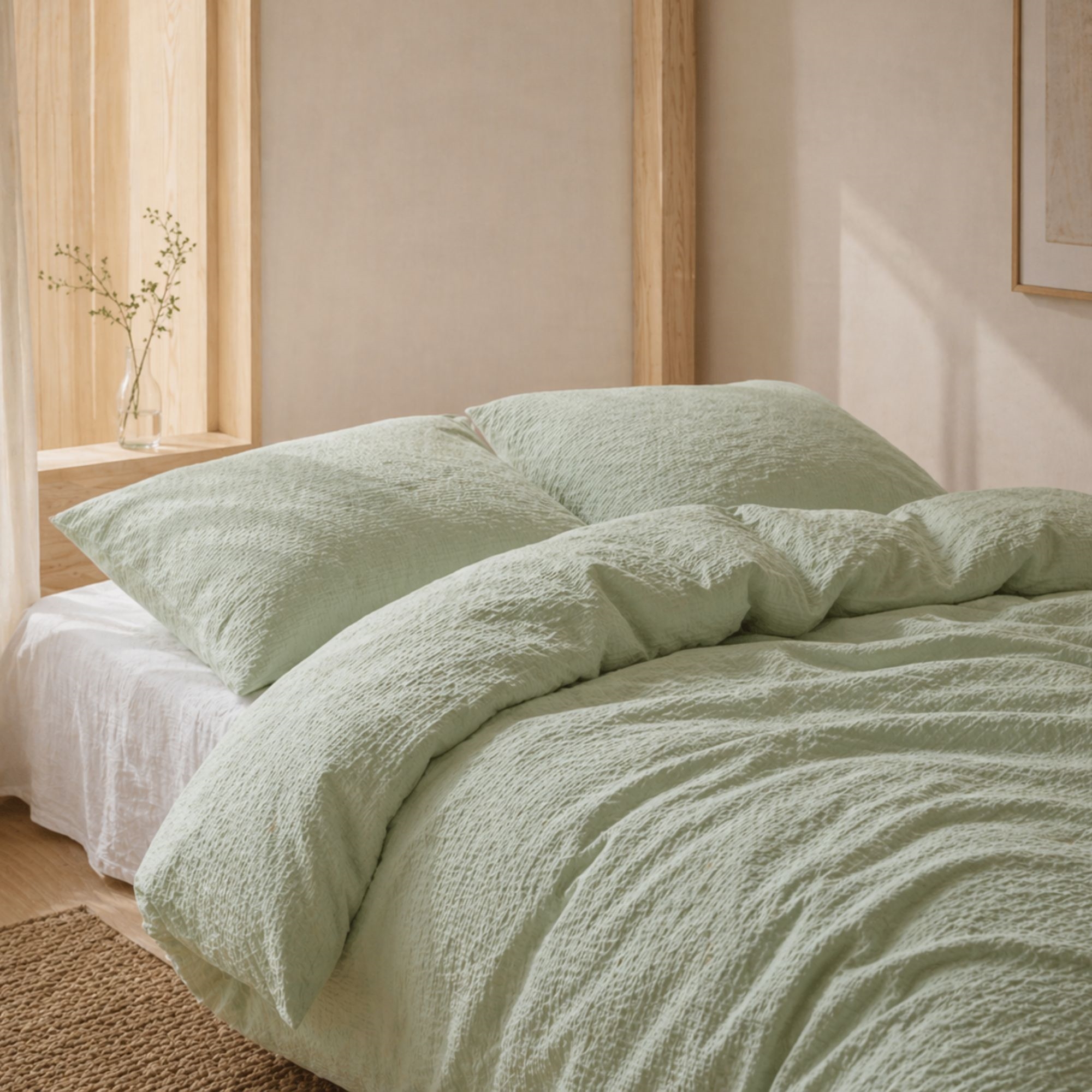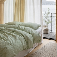 Bæk og bølge vævningen danner små luftlommer i stoffet, hvilket gør sengetøjet ekstra åndbart og let at sove i. Overfladen føles køligere mod huden end traditionelt glat sengetøj og er derfor særligt velegnet til varme nætter eller til dig, der ofte får det varmt, når du sover. Samtidig bevarer bomulden sin naturlige blødhed og evne til at absorbere fugt, så du får en behagelig og tør sovekomfort. Sengetøjet har en trådtæthed på 200TC, som sikrer en god balance mellem holdbarhed, komfort og blødhed. Den vaflede struktur gør, at sengetøjet ikke behøver at blive strøget for at se pænt ud - det karakteristiske udtryk er en naturlig del af designet.