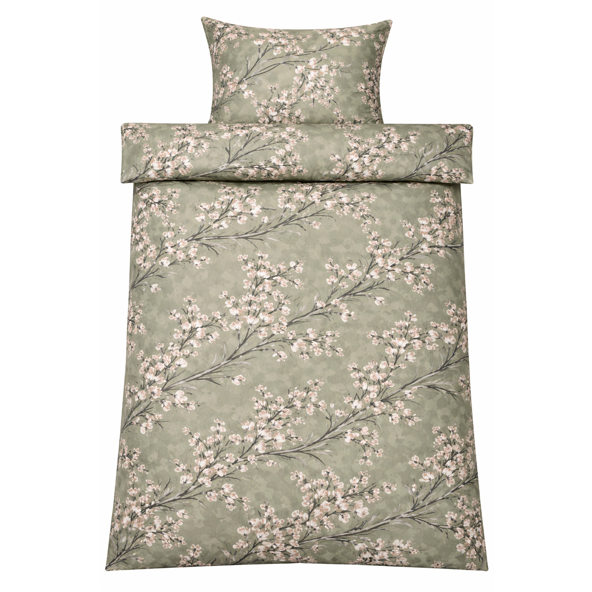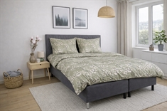 Det vendbare design giver to looks i ét sengesæt. Forsiden har et elegant blomsterprint i varme grønne nuancer, mens bagsiden er ensfarvet og mere afdæmpet. En fleksibel løsning, der gør det nemt at variere stilen i soveværelset.