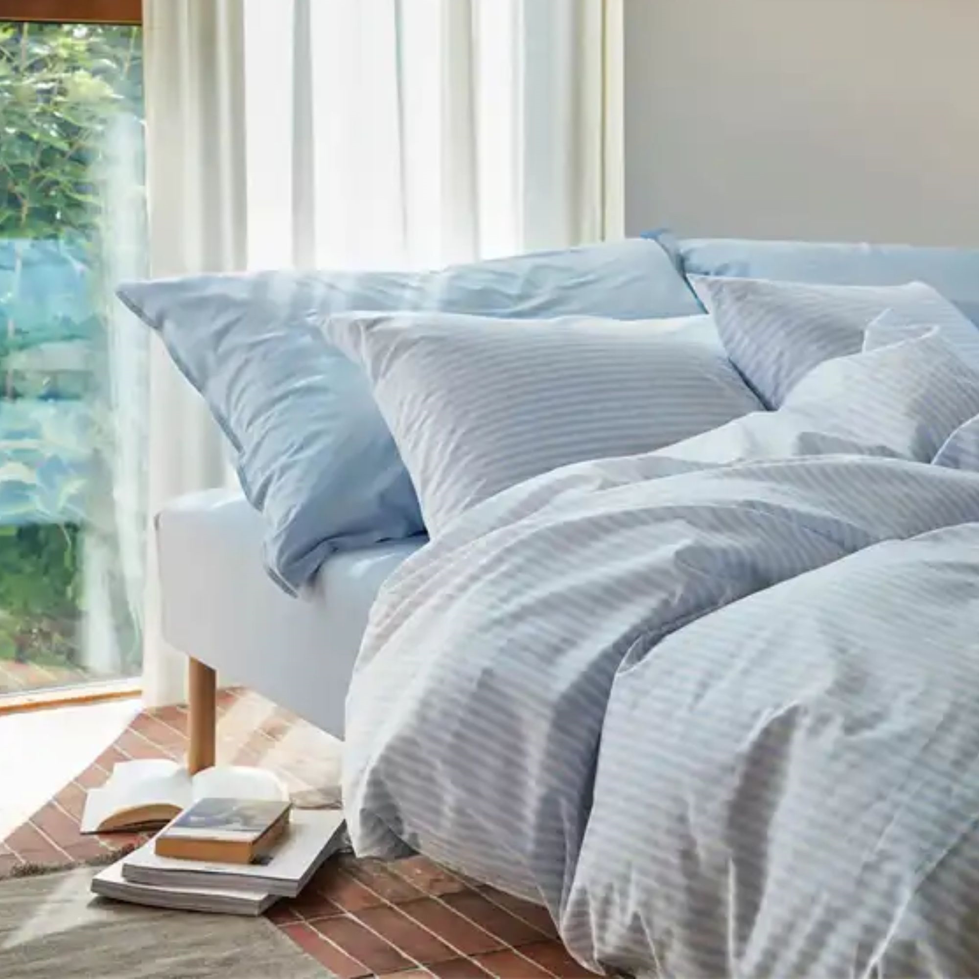 Forside » Sengetøj » Dobbelt sengetøj » Dobbelt sengetøj 200x220 cm Dobbelt sengetøj 200x220 cm - 100% bomuld - Høie of Scandinavia - Tor Light Blue Høie Of Scandinavia Skarp pris: 698,00DKK Gratis fragt på denne varePå lager Trustpilot Vælg størrelse Vælg variant Antal Læg i kurv Se mere fra: Høie Of Scandinavia Artikelnummer: 7965-5 Læs vores sengetøjsguide Se vores store udvalg af lagner Har du spørgsmål til produktet? Åndbart materiale der fremmer en god nattesøvnBlødt sengetøj der føles behagelig mod hudenOpnå en komfortabel nattesøvn hele natten Dynebetræk: 200x220 cm Pudebetræk: 2 stk. á 60x63 cm Materiale: 100% ekstra fin bomuld Vævning: 144TC (Thread count = antal tråde pr. kvadrattomme) Farve: Lyseblå Design: Tor Light Blue Brand: Høie of Scandinavia Lukning: Dynebetræk med lynlås, pudebetræk med overlap Vask: 60° Tørretumbling: Ja Tåler strygning: Ja Certificering: EASY CARE behandlet, hvilket betyder det ikke krøller efter vask. Certificering: STANDARD 100 by OEKO-TEX® (M27MV9610). Din garanti for at produktet er fri for sundhedskaldelig kemi. Stribet sengetøj i ekstra fin bomuld fra Høie Dette sengesæt fra Høie Of Scandinavia er fremstillet i 100% ekstra fin bomuld med en 144TC vævning, som giver en blød og glat overflade med en diskret glans. Bomuld er et naturligt materiale, som føles blødt mod huden og som samtidig er åndbart, så kroppen kan komme af med varme og fugt i løbet af natten. Det gør, at bomuldssengetøj er velegnet til brug året rundt og til både varme og køligere nætter. Bomuld er kendt for at være robust og slidstærkt som kan tåle hyppig vask og daglig brug, uden at det gør noget ved kvaliteten. Dobbelt sengetøj er det ideelle valg til dig, der bruger dobbeltdyne og ønsker et ensartet og roligt udtryk i sengen. Dobbeltsengetøj giver god bevægelsesfrihed natten igennem og er velegnet til både par og dig, der ønsker ekstra plads og komfort. I dette sæt medfølger der et dynebetræk og to pudebetræk. Sengetøjet er STANDARD 100 by OEKO-TEX® certificeret, hvilket er din garanti for, at produktet er fri for sundhedsskadelig kemi. Det er også Easy Care behandlet, som sikrer mindre krøl og bedre facon efter vask. Easy Care gør dit sengetøj ekstra blødt og let at stryge. Bomuldssatin sengetøj er derfor et oplagt valg for dig, der ønsker ekstra komfort og en hotel-lignende fornemmelse derhjemme, men stadig vil have et natur materiale, der er nemt at passe og behageligt at sove i. Se alt vores sengetøj i bomuld her Høie Of Scandinavia Høie of Scandinavia er et velkendt skandinavisk tekstilbrand som siden 1850 har haft en lang historie, især inden for sengetøj, dyner og puder. Høie er kendt for høj kvalitet, tidløst design og komfort - det afspejler sig i deres nordisk stil og funktionalitet. Høie kombinerer traditionelt håndværk med moderne produktion og materialer for at skabe varer, der er både behagelige at sove i og holdbare i hverdagen. Se hele udvalget af Høie her Tilbage til Dobbelt sengetøj 200x220 cm