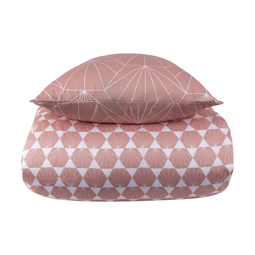 Dobbelt sengetøj 240x220 cm - Bomuldssatin - Vendbart fersken Hexagon print
