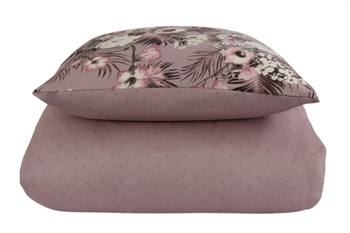 Skab en stemningsfuld og elegant atmosfære i soveværelset med dette smukke King Size sengesæt i 100% bomuldssatin. Sengetøjet kombinerer et dekorativt blomsterprint med et mere roligt prikket design på bagsiden, så du nemt kan skifte udtryk i soveværelset ved blot at vende sengetøjet.