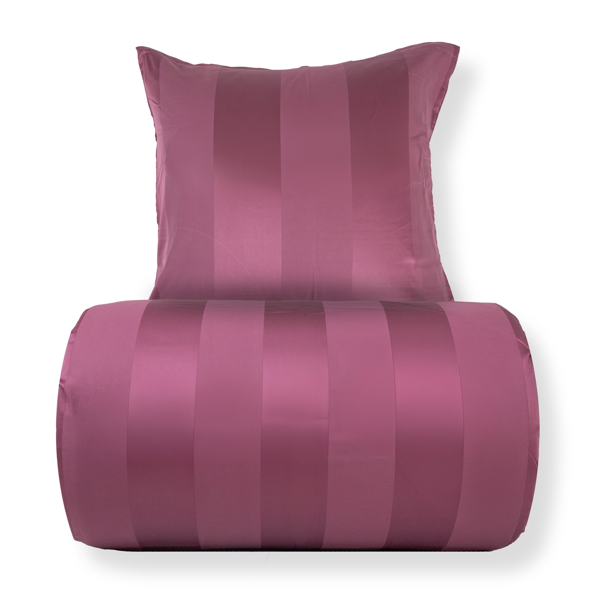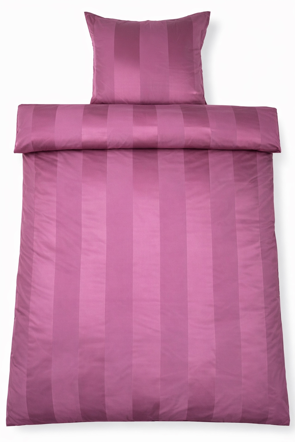 Skab en eksklusiv hotelstemning i soveværelset med dette blommefarvet stribede sengetøj til dobbeltdyner i 100% bomuldssatin. Det elegante design med brede jacquardvævede striber kombinerer tidløs minimalisme med luksuriøs komfort og er perfekt til dig, der ønsker et stilrent og indbydende sovemiljø.