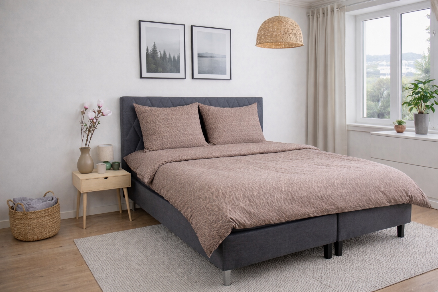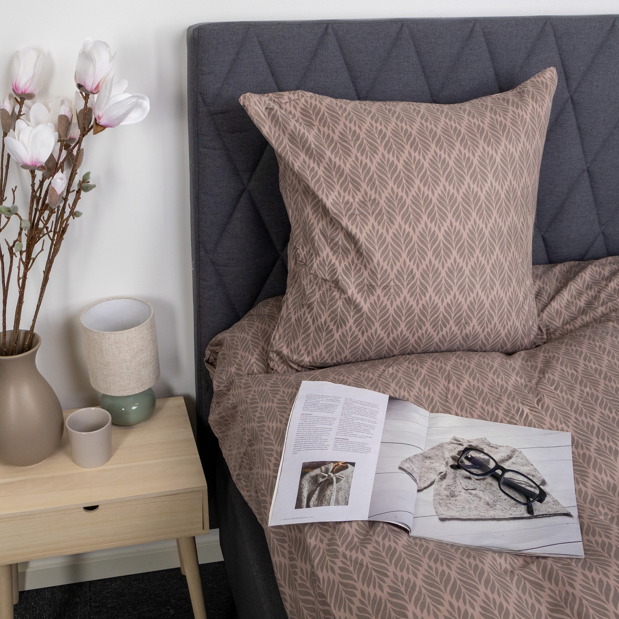 Både dynebetræk og pudebetræk lukkes med indvendig lynlås, som sikrer, at dynen og puden bliver på plads, og gør det nemt at skifte sengetøj. Det brune mønster skaber et roligt og dekorativt udtryk, der passer ind i både moderne og klassiske soveværelser. Det medfølger 2 pudebetræk til dette sengesæt.