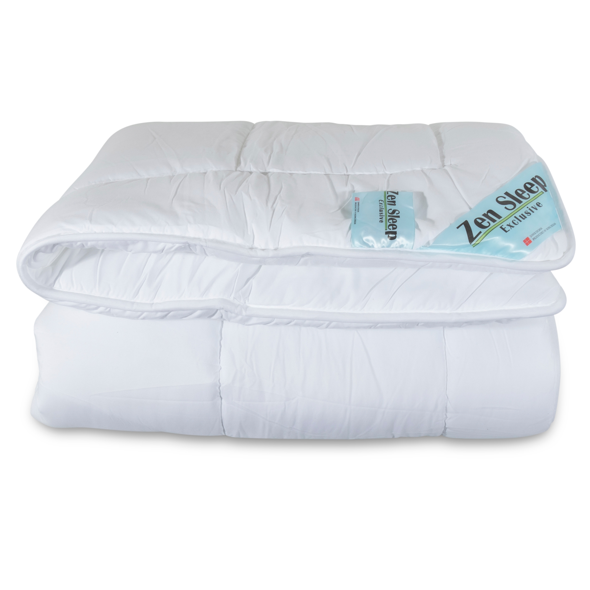 Zen Sleep Exclusive 2-lags King size termodyne er en allergivenlig fiberdyne af en høj kvalitet. Den er perfekt til dig, som ønsker en varm, tungere dyne, der falder godt rundt om kroppen. Dynen er fyldt med microfibre der absorberer og transporterer fugten væk fra kroppen, således kan kroppen ånde og samtidig holde en konstant temperatur. Dynens microfiberfyld er fordelt i kassetter, hvor selve fibrene er fremstillet så de minder om de egenskaber man ellers kender fra en dundyne. Når dynen er kassettesyet sikrer man, at fibrene fordeler sig jævnt i dynen og isolerer uden kuldebroer. En af de mange fordele ved en fiberdyne er også, at den er utrolig nem at vedligeholde. Fiberdynen har en meget tæt konstruktion der gør at den tåler at blive vasket igen og igen. Dette sikrer dig en god, solid og hygiejnisk dyne, med en lang levetid.