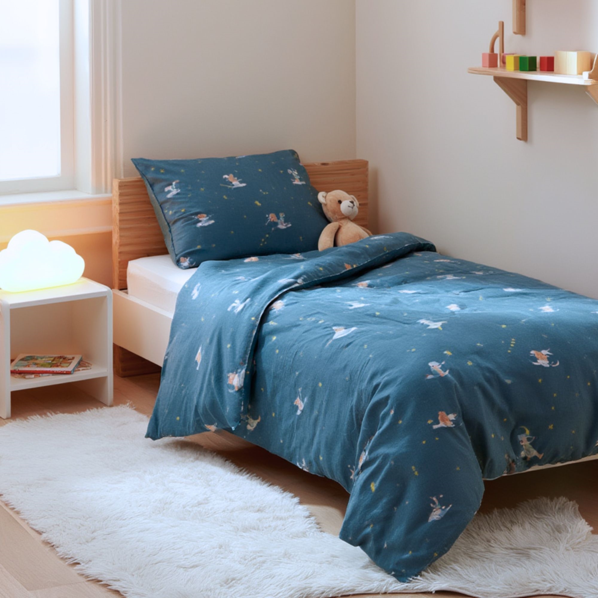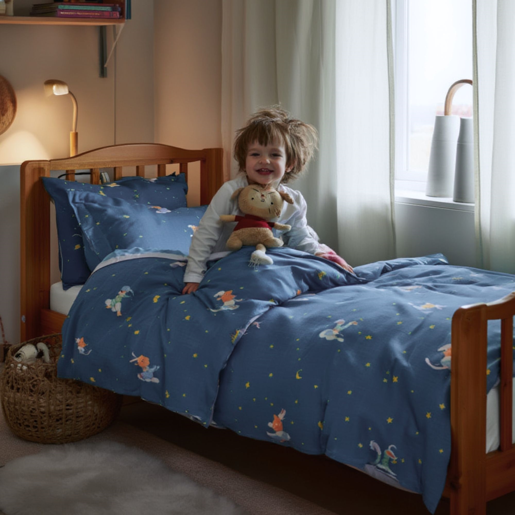 Sengesættet er fremstillet i 100% blød bomuld, som er åndbart og skånsomt mod babyens sarte hud. Bomuldens naturlige egenskaber hjælper med at regulere temperaturen gennem natten, så din baby får en tryg, komfortabel og rolig søvn – hele året rundt.