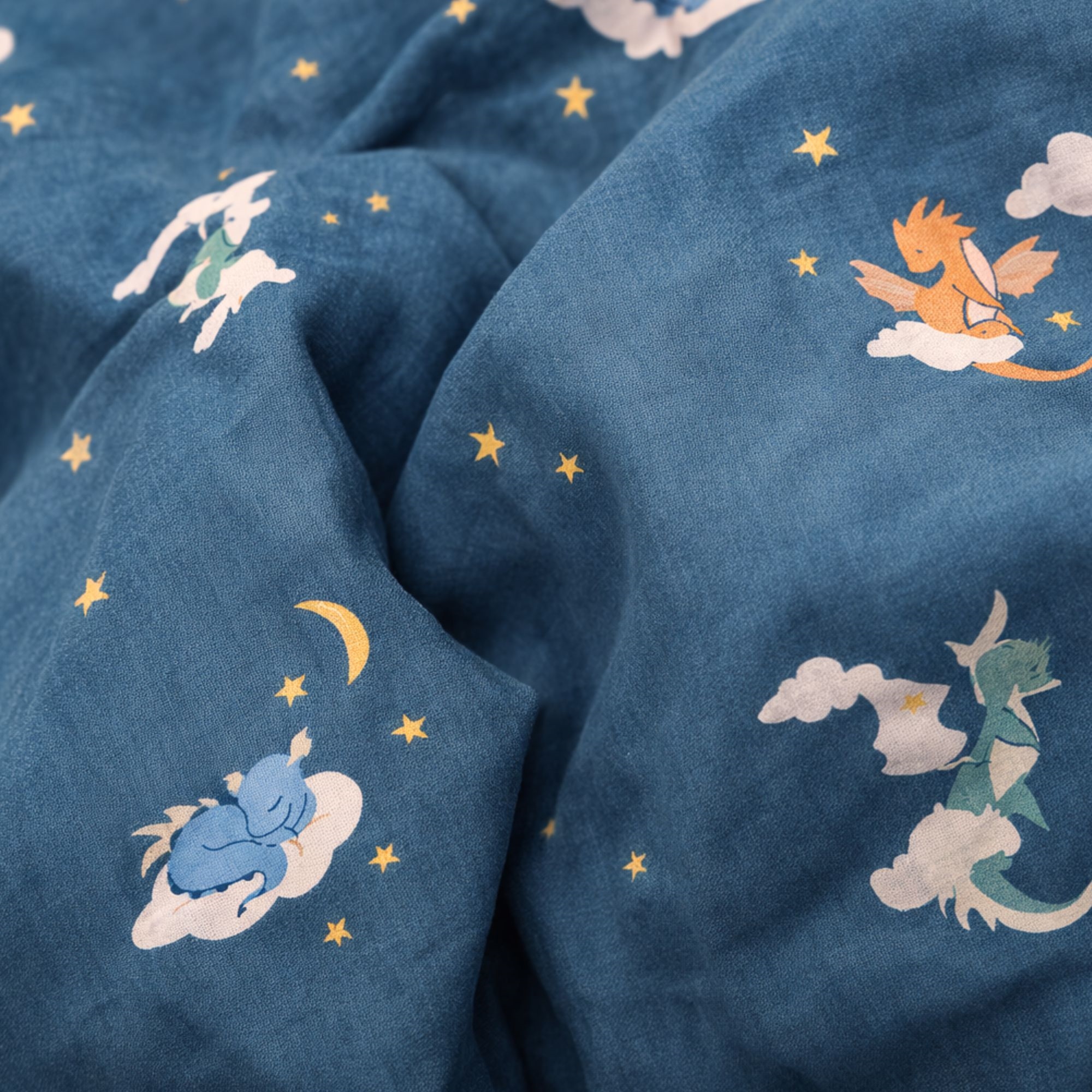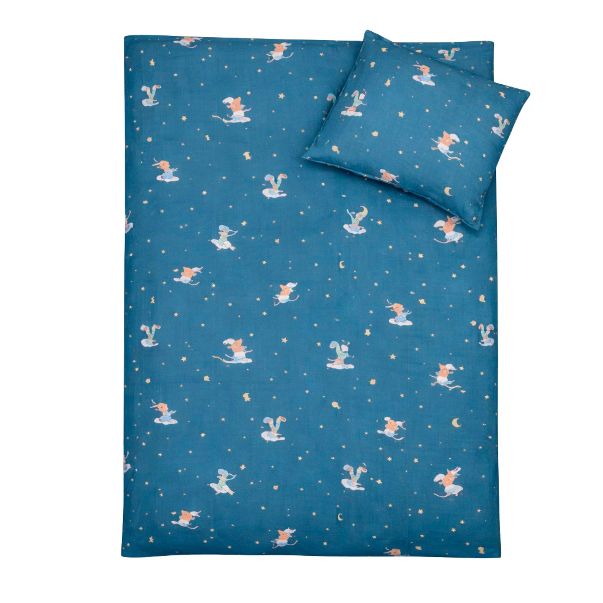 By Mats babysengetøj 70x100 cm - blåt med drager og skyer