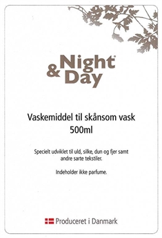 Forside » Dyner » Enkelt dyner » Enkelt dyne 140x200 cm Enzymfrit vaskemiddel - Dun vask - Dansk produceret vaskemiddel til uld, dun og skånevask - Til dundyner og dunpuder - Night & Day Stor flaske Spar23% Arctic 129,9599,95DKKSpar 30,- På lager Trustpilot Antal Læg i kurv Se mere fra: Arctic Artikelnummer: 4426341- Læs vores dyneguide Læs om vedligeholdelse af dyner og puder Se vores store udvalg af puder Har du spørgsmål til produktet? Dun vaskemiddel - 500 mlEnzymfri vask / SkånevaskParfumefri Type: Enzymfrit vaskemiddel - dunvask Indhold: 500 ml Anvendelse: Kan bruges til alle produkter der skal vaskes på skånevask og/eller med enzymfrit vaskemiddel - anbefales til vask af uld, dun, bambus og & silke (såfremt at produkterne kan vaskes) Dosering: Silke & Uld - 10 ml/kg Dun - 10-15 ml/kg Produceret i: Danmark Brand: Night & Day Flasken bør altid vendes forsigtig på hovedet, sådan at indholdet blandes i flasken - sæben kan bundfalde hvis det ikke bruges i længere perioder. Night & Day har udviklet en vaskemiddel uden enzymer, som beskytter og skåner dine produkter som kan være følsomme overfor enzymer. Den store flaske med hele 500 ml, kan nemt række til mere end en vask. Det enzymfrie vaskemiddel er desuden produceret i Danmark, og lever derfor også op til høje danske standarder. Det er vigtigt altid at læse vaske anvisningen på produktet inden du vasker - dette gælder både for dyner, puder, sengetøj, lagner og alle øvrige produkter. Vedligeholdelse af dyner og puder: For at du skal få glæde af din dyne i mange år, er det vigtigt at du løbende vedligeholder din dyne. Når du står op om morgenen, så lad den komme af med den fugt, den har optaget i løbet af natten. Ryst din dyne når du reder sengen, derved holder du dynen fyldig, let og luftig. Husk at ryste fra alle 4 sider, så fyldet holdes jævnt fordelt i dynen. Du bør lufte både dyne og pude så ofte som muligt, dog altid i betrækket - aldrig i direkte sol. Dyner og puder må IKKE støvsuges eller bankes. Brug i stedet for en blød børste. Tilbage til Enkelt dyne 140x200 cm