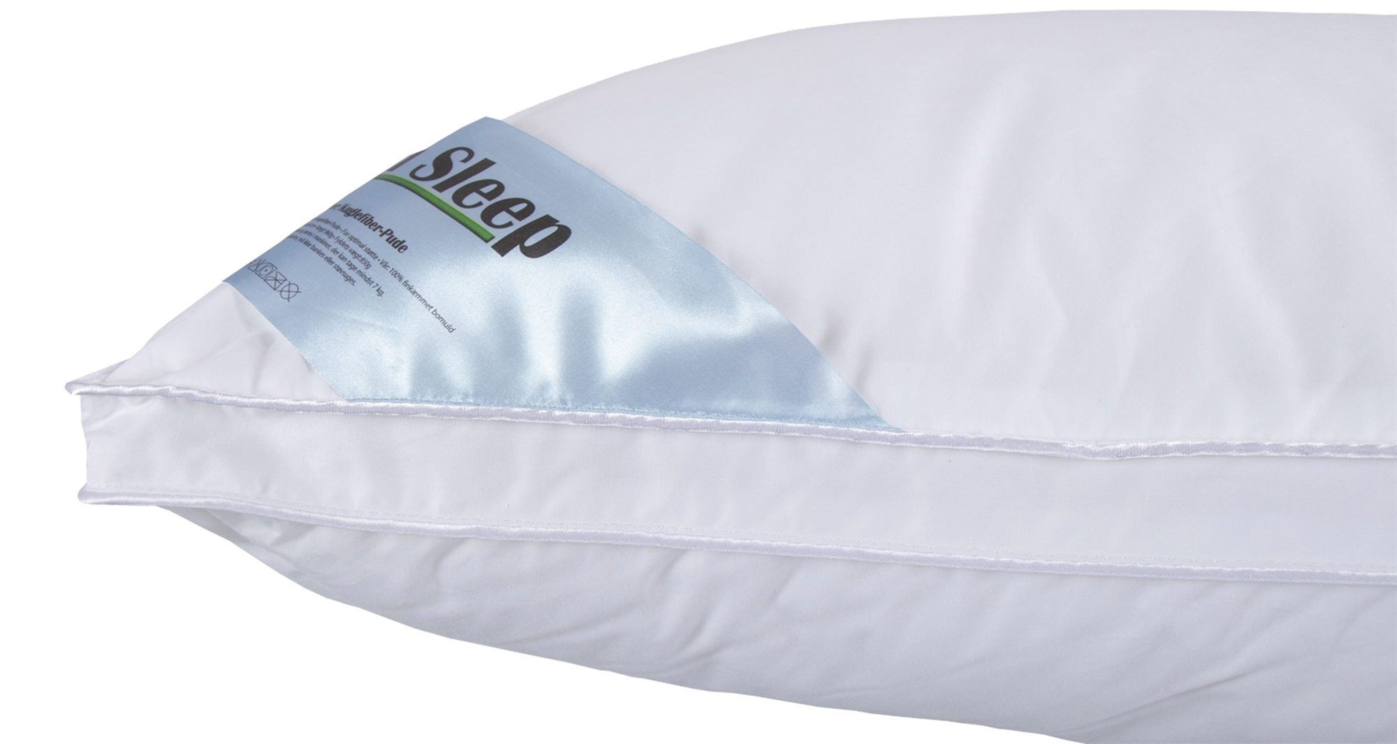 Puden er med et bomuldscambric, som er tæt og har den originale pude følelse. Herudover er puden udstyret med en 3 cm høje boxkant, som er med til at give dig en vamset og fyldig pude, hvor fyldet fordeler sig let ud i hele puden. Du vil derfor ikke opleve at puden 'topper' lige så højt på midten, men at du kan benytte hele puden, hvis du f.eks. er en person der vender sig ofte i søvne.