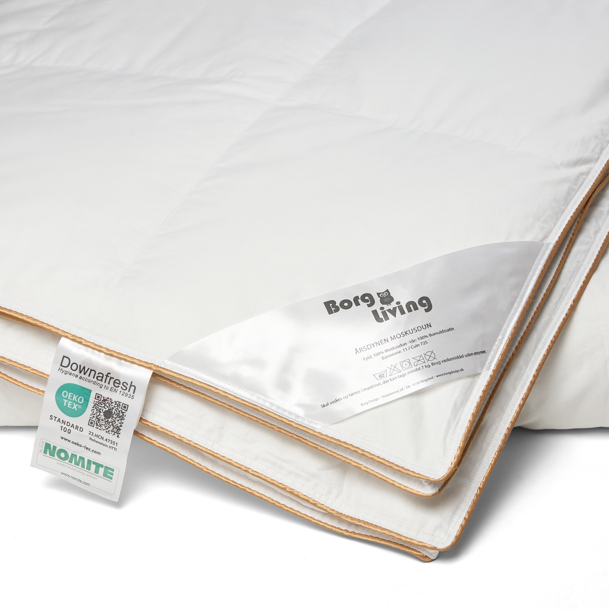 Brandet Borg Living gør meget ud af at producere kvalitet produkter med komforten helt i top. Derfor har de gennemgået dette års produktoptimeringer, og sammensat et særligt Limited Edition års sortiment af dyner og tilhørende pude - alle med samme fokus på komfort og høj kvalitets materialer. Så mangler du et lækkert helårs dyne-pudesæt, så er årssættet en helt sikker vinder. Årspuden er ligeledes produceret af lækre bløde moskusdun. Hovedpuden har derudover også et væld af andre egenskaber, såsom 3 kamre og bokskant konstruktion, som tilføre puden høj komfort og kvalitet.