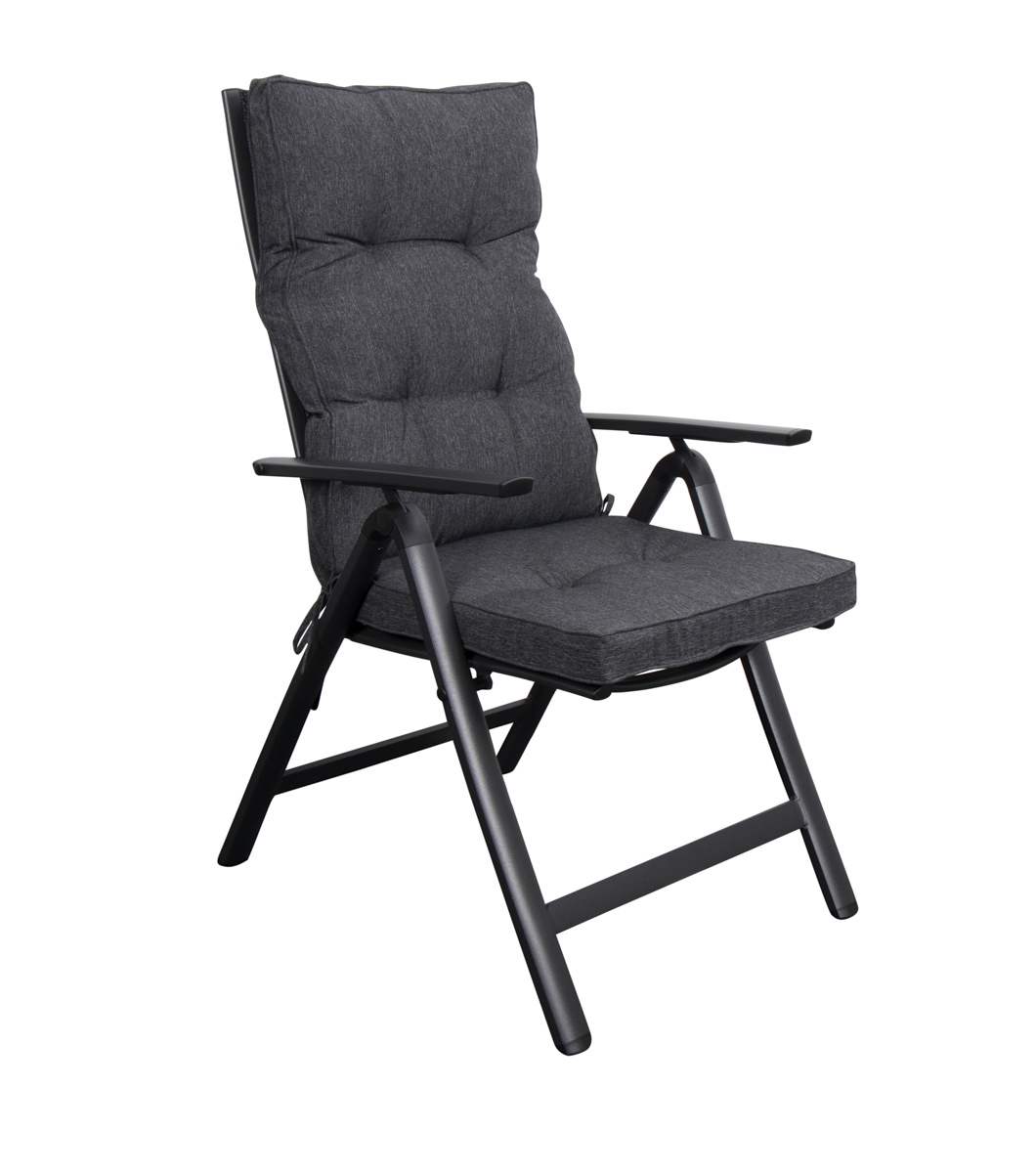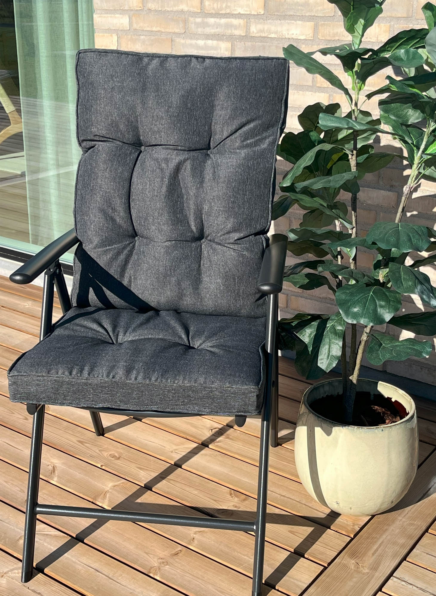 Eksklusiv havehynde til positionsstol - Ekstra blød 7 cm tyk luksus havehynde til høj stoleryg - Moderne button design antracit grå stolehynde - UV beskyttet Nordstrand Home hynde