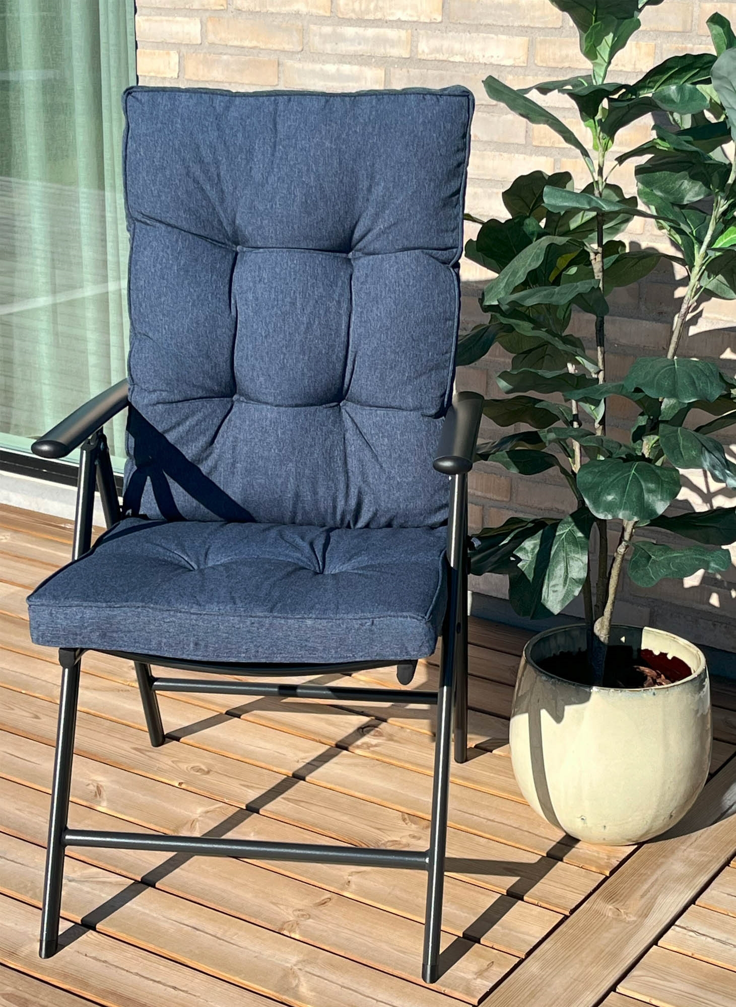 Forside » Indretning » Haven Eksklusiv havehynde til positionsstol - Ekstra blød 7 cm tyk luksus havehynde til høj stoleryg - Moderne button design mørkeblå stolehynde - UV beskyttet Nordstrand Home hynde Spar46% Nordstrand Home 649,95349,95DKKSpar 300,- På lager Trustpilot Antal Læg i kurv Se mere fra: Nordstrand Home Artikelnummer: HA-POS-304 Har du spørgsmål til produktet? Luksuriøs hyndeHøj komfortUV beskyttet & vandafvisende Type: Eksklusiv havehynde til positionsstol (havestol med høj ryg) Ryghøjde: 70 cm Sæde dybde: 50 cm (bredde: 50 cm) Tykkelse: 7 cm Farve: Mørkeblå Fyld: PU-Skum i sæde & blød skum rygstøtte Betræk: UV-resistent polyester Vandafvisende: Ja Vask: Rengøres med fugtig klud Brand: Nordstrand Home Model: Eksklusiv Certificering: STANDARD 100 by OEKO-TEX® (SH025 165885 TESTEX). Din garanti for at produktet er fri for sundhedsskadelig kemi. Eksklusiv og tyk havehynde til positionsstol, med luksus komfort og moderne button cushion design. Hynde til din havestol som giver absolut max komfort, med en ideel balance af fast PU skum i sædet, blødt skumfyld og god støtte i ryggen. Kombiner en tur i haven med eksklusiv komfort og nyd de lange sommerdage og aftener lidt ekstra, med en stolehynde som denne. Det flotte design føles ikke kun lækkert, men er også en fryd for øjet i dine havemøbler. En ultimativ lækker havehynde, der passer perfekt til alle almindelige positionsstole - også en havestol med høj stoleryg eller en loungestol med høj ryg er hynden ofte brugt i. Ønsker du dine havemøbler er flotte, stilfulde, bløde og inviterer til mange hyggelige timer udedørs på terrassen eller i haven, så går du ikke forkert med Eksklusive havehynden. Den tykke skumkerne giver hynden max komfort - herudover er stolehynden produceret med slidstærke materialer, som også er beskyttet mod vind, vejr og ikke mindst solens stråler. Den eksklusive positionsstols havehynde er beklædt med et standard strukturvævet polyesterbetræk, der er særlig slidstærkt og UV-resistent. Dette betyder, at hynden bedre kan modstå skiftende vejrforhold - og især solens stråler, uden at falme i farve eller miste form. Hynden er også overfladebehandlet, så den er vand- og smudsafvisende, samt har hurtigtørrende fyld og betræk. Stolehynden er derfor nem at vedligeholde, da den let kan rengøres med en fugtig klud. Hynden fastgøres med justerbar spænderem bagom stoleryggen, samt snore i hver side. Synk ned i denne lækre havehynde og nyd den unikke komfort - en havehynde til din havestol som ikke går på kompromis med materialer eller moderne design. Hynden sætter final touches på dine havemøbler, og gør selv en almindelig havestol til en flot og blød fornøjelse. Med Nordstrand Home er du sikret boligtekstiler i dansk design - i nordisk stil. Nordstrand Home lægger stor vægt på følelsen af velvære i et flot, men samtidig, afslappende miljø. Med Nordstrand Home behøver du ikke gå på kompromis, du finder altid produkter i klassiske og moderigtige farver. Nordstrand Home – Så føler du dig hjemme! Tilbage til Haven