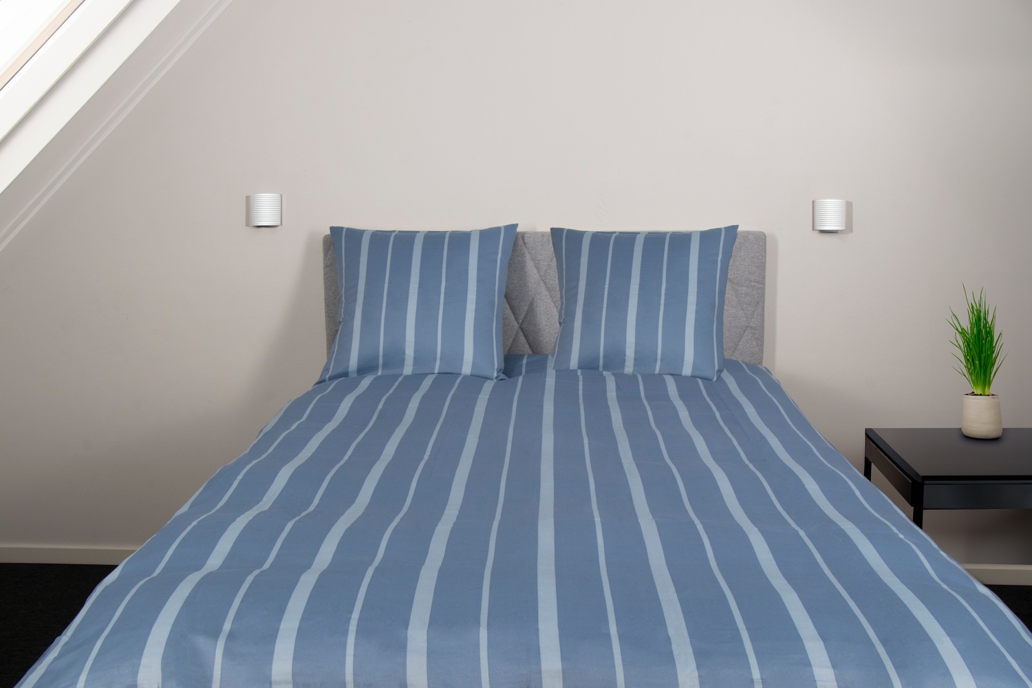 Forside » Sengetøj Ekstra blødt dobbelt sengetøj 200x220 cm - 100% bomuldssatin - Lyseblåt stribet sengesæt - 300 TC sengelinned fra By Borg 2 x PudebetrækSpar78% By Borg 1.599,95345,00DKKSpar 1.255,- På lager Trustpilot Antal Læg i kurv Se mere fra: By Borg Artikelnummer: 801-5 Læs vores sengetøjsguide Se vores store udvalg af lagner Se vores store udvalg af dyner 200x220 Har du spørgsmål til produktet? Ekstra fin & tæt vævning - 300 TCLuksuriøs blødhed Høj åndbarhed & komfort Dynebetræk: 200x220 cm Pudebetræk: 2 stk. á 60x63 cm Materiale: 100% bomuldssatin Vævning: Ekstra fin 300 TC vævning (Thread count = antal tråde pr. kvadrattomme) Farve: Blå og lyseblå striber Design: Lana stribet Brand: Excellent By Borg Lukning: Dyne- og pudebetræk med indvendig skjult lynlås Vask: 60° Tørretumbling: Ja Tåler strygning: Ja Certificering: STANDARD 100 by OEKO-TEX® (M24LKFHY1 Hohenstein HTTI). Din garanti for at produktet er fri for sundhedsskadelige stoffer. Luksuriøst 100% bomuldssatin sengetøj, med et klassisk stribet design i rolige farver. Et sengesæt med fokus på høj komfort, åndbarhed og en lækker blødhed. Som kombinere kvalitets materialer med et stilrent design, og tilsammen skaber et sengelinned der giver dit sovemiljø en følelse af hjemlig forkælelse. Sengetøjet er fremstillet i 100% bomuldssatin, med en ekstra tæt og fin vævning på 300 TC. Denne tætte TC giver sengesættet en helt unik og luksuriøs blødhed. Kendetegnet ved denne type af sengelinned er netop den ekstraordinære blødhed og følelsen af det kraftigt materiale. Den fine bomuldssatin som er vævet af ekstra fine garner og har en helt tæt vævning på hele 300 TC, hvilket indikerer at der er intet mindre end 300 fine tråde vævet sammen pr. kvadrattomme - og jo højere TC, desto tættere er vævningen. Kombinationen af den høje TC, fine bomuldssatintråde og vævemetodens art, gør at sengesættet ikke kun er utrolig lækkert at sove med, men også har en høj slidstyrke, åndbarhed og absorberingsevne. Sengesættet er 100% gennemfarvet, hvilket betyder at farven under produktionen bindes i bomuldsfibrene og giver sengetøjet en høj farveægthed. Dette gør at materialets farve og design bevares selv efter gentagende vaske. Sengesættet lukkes med skjult lynlås i både dyne og pudebetræk. Køb let pudebetræk til dine ekstra puder her Benyt samtidig muligheden for at sikre dig øget sovekomfort, ved at tilføje et nyt blødt lagen af høj kvalitet. Du finder vores store sortiment af kvalitets lagner her Excellent By Borg har med deres dansk producerede dyner og puder, samt fantastiske sengetøj fokus på komfort og søvnoptimering. De ved at kilden til en god hverdag og høj livskvalitet er forbundet med en optimal og god nattesøvn. Derfor har de gjort det nemt for dig at finde de rette sovekomponenter, der passer til netop dit behov. Produkterne fra Excellent By Borg giver dig yderst høj kvalitet samt en grundig certificering. Tilbage til Sengetøj