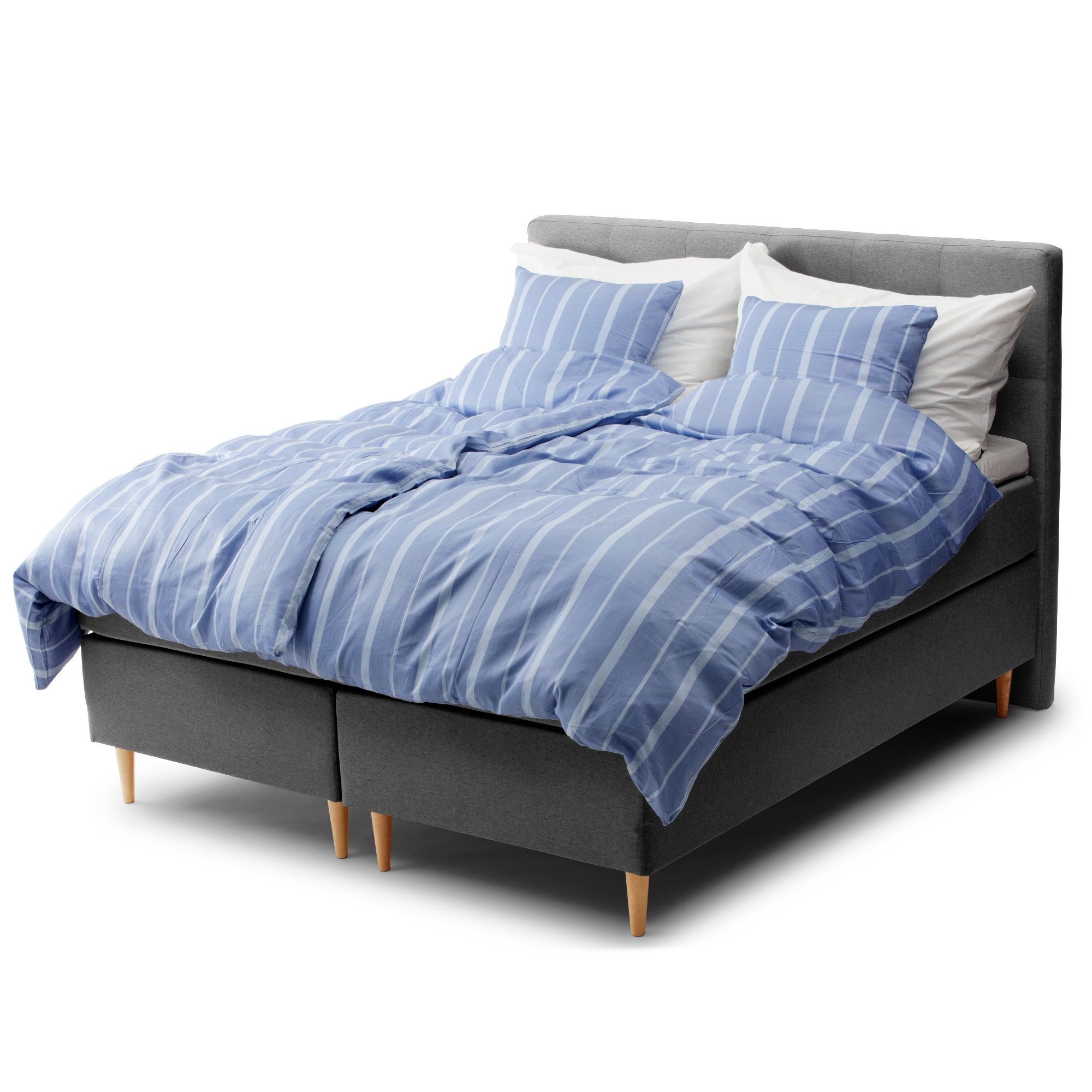 Forside » Sengetøj Ekstra blødt sengetøj 140x200 cm - 100% bomuldssatin - Lyseblåt stribet sengesæt - 300 TC sengelinned fra By Borg Spar83% By Borg 999,95165,00DKKSpar 835,- På lager Trustpilot Antal Læg i kurv Se mere fra: By Borg Artikelnummer: 801-1 Læs vores sengetøjsguide Se vores store udvalg af lagner Se vores store udvalg af dyner 140x200 Har du spørgsmål til produktet? Ekstra fin & tæt vævning - 300 TCLuksuriøs blødhed Høj åndbarhed & komfort Dynebetræk: 140x200 cm Pudebetræk: 1 stk. á 60x63 cm Materiale: 100% bomuldssatin Vævning: Ekstra fin 300 TC vævning (Thread count = antal tråde pr. kvadrattomme) Farve: Blå og lyseblå striber Design: Lana stribet Brand: Excellent By Borg Lukning: Dyne- og pudebetræk med indvendig skjult lynlås Vask: 60° Tørretumbling: Ja Tåler strygning: Ja Certificering: STANDARD 100 by OEKO-TEX® (M24LKFHY1 Hohenstein HTTI). Din garanti for at produktet er fri for sundhedsskadelige stoffer. Luksuriøst 100% bomuldssatin sengetøj, med et klassisk stribet design i rolige farver. Et sengesæt med fokus på høj komfort, åndbarhed og en lækker blødhed. Som kombinere kvalitets materialer med et stilrent design, og tilsammen skaber et sengelinned der giver dit sovemiljø en følelse af hjemlig forkælelse. Sengetøjet er fremstillet i 100% bomuldssatin, med en ekstra tæt og fin vævning på 300 TC. Denne tætte TC giver sengesættet en helt unik og luksuriøs blødhed. Kendetegnet ved denne type af sengelinned er netop den ekstraordinære blødhed og følelsen af det kraftigt materiale. Den fine bomuldssatin som er vævet af ekstra fine garner og har en helt tæt vævning på hele 300 TC, hvilket indikerer at der er intet mindre end 300 fine tråde vævet sammen pr. kvadrattomme - og jo højere TC, desto tættere er vævningen. Kombinationen af den høje TC, fine bomuldssatintråde og vævemetodens art, gør at sengesættet ikke kun er utrolig lækkert at sove med, men også har en høj slidstyrke, åndbarhed og absorberingsevne. Sengesættet er 100% gennemfarvet, hvilket betyder at farven under produktionen bindes i bomuldsfibrene og giver sengetøjet en høj farveægthed. Dette gør at materialets farve og design bevares selv efter gentagende vaske. Sengesættet lukkes med skjult lynlås i både dyne og pudebetræk. Køb let pudebetræk til dine ekstra puder her Benyt samtidig muligheden for at sikre dig øget sovekomfort, ved at tilføje et nyt blødt lagen af høj kvalitet. Du finder vores store sortiment af kvalitets lagner her Excellent By Borg har med deres dansk producerede dyner og puder, samt fantastiske sengetøj fokus på komfort og søvnoptimering. De ved at kilden til en god hverdag og høj livskvalitet er forbundet med en optimal og god nattesøvn. Derfor har de gjort det nemt for dig at finde de rette sovekomponenter, der passer til netop dit behov. Produkterne fra Excellent By Borg giver dig yderst høj kvalitet samt en grundig certificering. Tilbage til Sengetøj