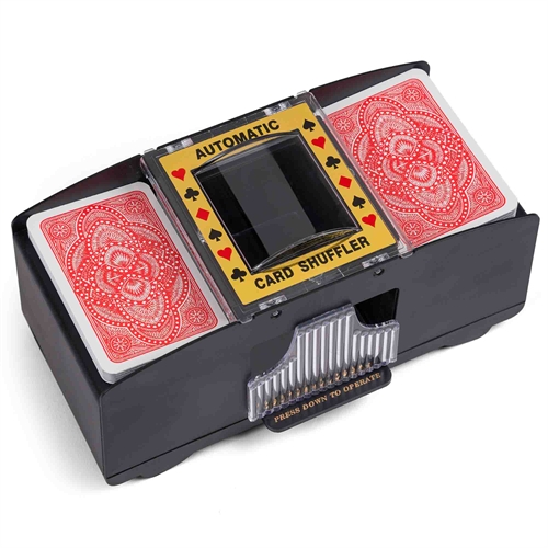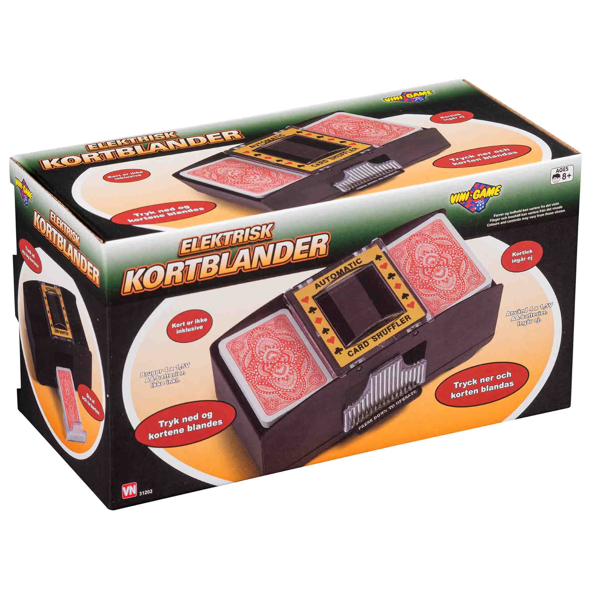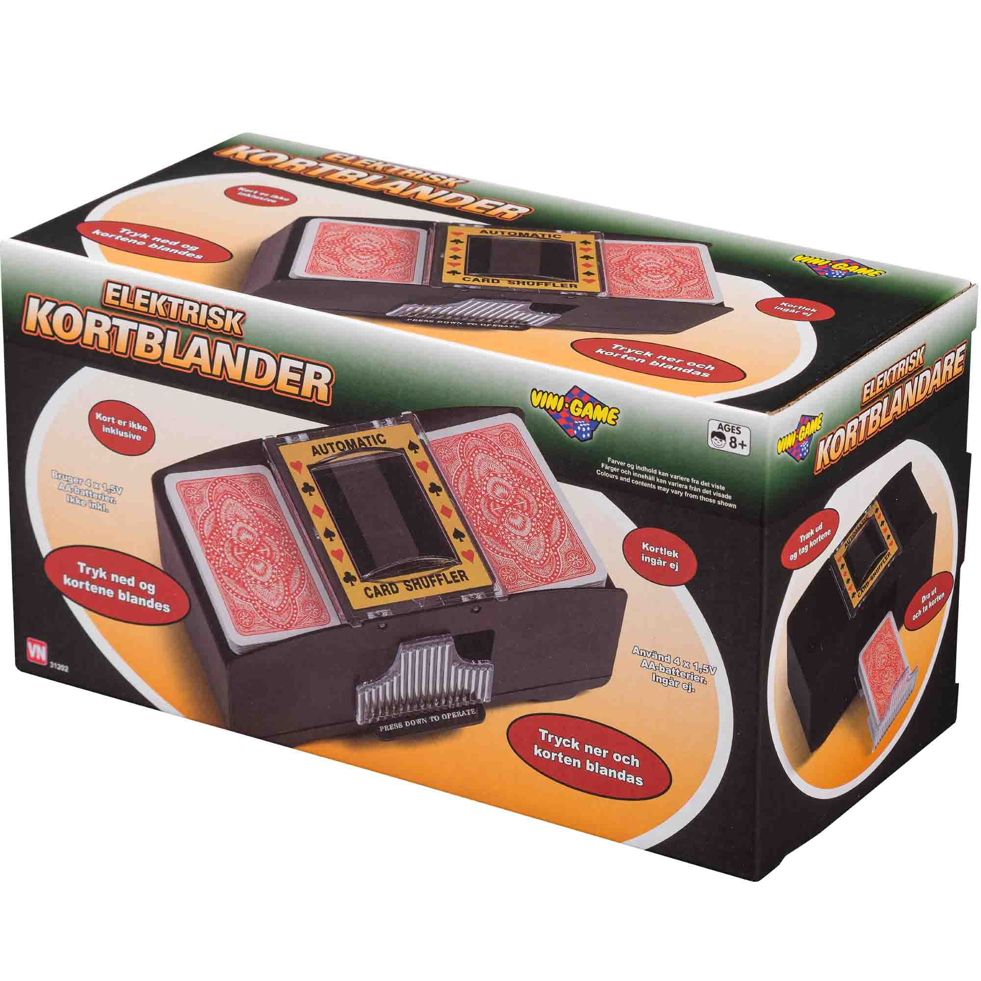Forside » Legetøj » Forårsleg Elektrisk Kortblander - Nem og Hurtig Blanding af Spillekort HOME-TEX Skarp pris: 99,95DKK Få på lager Trustpilot Antal Læg i kurv Se mere fra: HOME-TEX Artikelnummer: LEG-VN31202 Har du spørgsmål til produktet? Automatisk kortblander til hurtig brugEnsartet og effektiv blanding af kortIdeel til poker og klassiske kortspil Effektiv løsning til kortspil uden besvær En elektrisk kortblander gør det hurtigt og nemt at blande spillekort, så du slipper for manuel blanding. Den er ideel til både hyggespil og større kortspil, hvor en jævn og effektiv blanding er vigtig. Det er et praktisk redskab til både familier og kortentusiaster. Automatisk kortblanding Kortblanderen sørger for en ensartet og hurtig blanding af kortene med et enkelt tryk. Kan bruges til forskellige typer kortspil som poker, rommy og andre klassiske spil. Kortblanderen er uden kort. Ekskl. 4 stk. AA-batterier. Fordele ved elektrisk kortblander Automatisk blanding reducerer tiden og gør det lettere, især ved mange spilrunder. Maskinen sikrer en mere tilfældig og retfærdig blanding sammenlignet med manuel blanding. Nem at bruge, da man ligger kortene i og lader maskinen klare arbejdet. Praktisk design Kortblanderen er kompakt og nem at opbevare, hvilket gør den velegnet til både hjemmebrug og at tage med på farten. Tilbage til Forårsleg