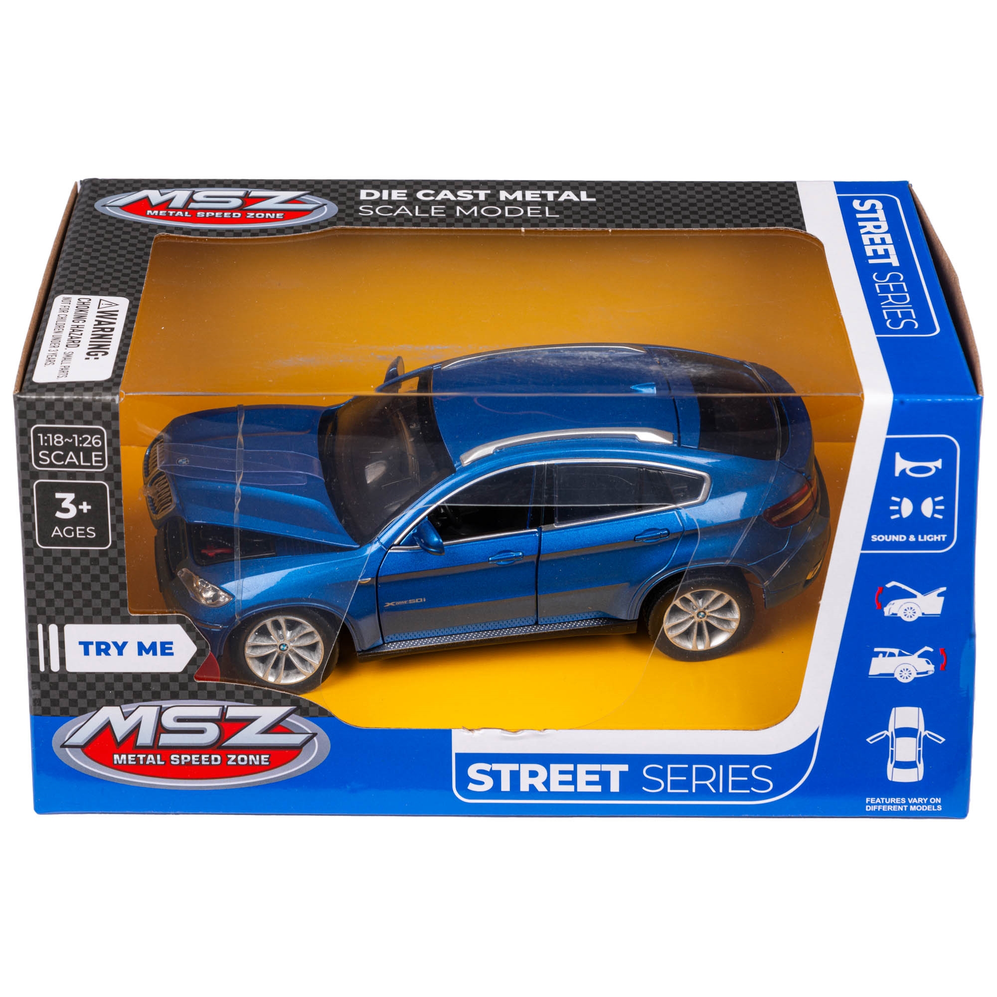Bilen er en realistisk model af BMW X6 med et kraftfuldt og gennemført design, der gør legen mere levende og spændende. De fine detaljer og det elegante SUV-udtryk giver en autentisk oplevelse, som gør det sjovt for barnet at lege og udforske bilen. Den har også lys- og lydeffekter samt døre, der kan åbnes, hvilket gør legen endnu mere realistisk og engagerende.