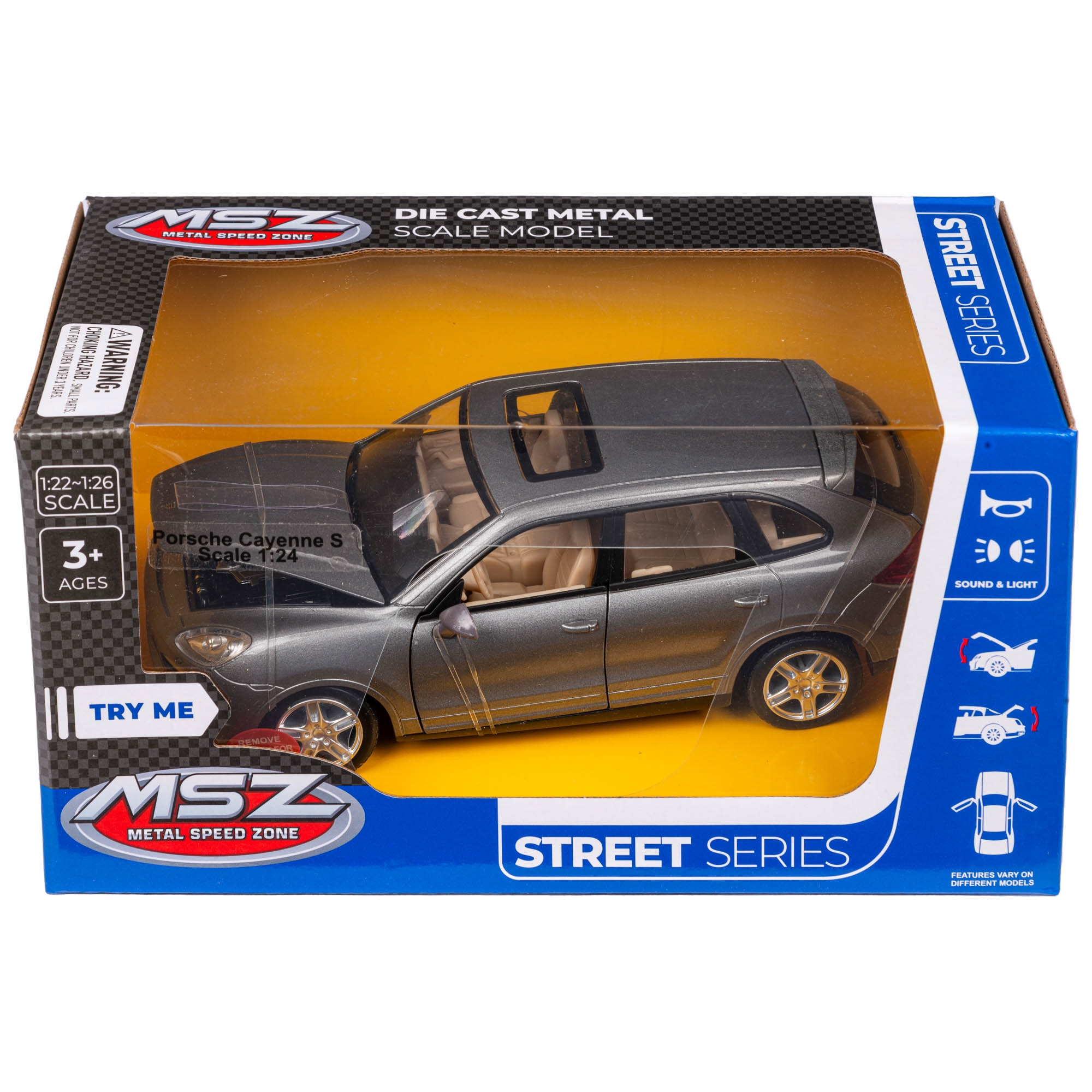 Forside » Legetøj » Legetøj » Biler og køretøjer Elektrisk legetøjsbil - SUV - Grå metal - MSZ HOME-TEX Skarp pris: 199,95DKK På lager Trustpilot Antal Læg i kurv Se mere fra: HOME-TEX Artikelnummer: LEG-VN41340-E Har du spørgsmål til produktet? Legetøjsbil med lys og lyd effekterSUV med realistisk design og detaljerIdeel gave til børn der elsker biler og køreoplevelser Type: Legetøjs biler Størrelse: 1:24 Farve: Grå Materiale: Metal Anbefalet alder: +3 år Bevægelige dele: Ja døre åbne Batteri: Ja, kræver 3 x knapcellebatterier - medfølger Lyd: Ja Lys: Ja Certificering: Produktet er CE-mærket efter danske standarder. Din garanti for, at legetøjet lever op til gældende krav for sikkerhed og er egnet til børn. Realistisk SUV til børn med fokus på kvalitet og leg Denne Porsche Cayenne S SUV er en detaljeret model designet til børn, der ønsker en realistisk og spændende legeoplevelse. Med sit autentiske design inspireret af den ikoniske SUV kombinerer bilen leg, fantasi og motorik i én samlet løsning. Den stilfulde model giver masser af underholdning og kreativ leg. Autentisk design og detaljer Bilen er en realistisk model af Porsche Cayenne S med et kraftfuldt og gennemført design, der gør legen mere levende og spændende. De fine detaljer og det elegante SUV-udtryk giver en autentisk oplevelse, som gør det sjovt for barnet at lege og udforske bilen. Den har også lys- og lydeffekter samt døre, der kan åbnes, hvilket gør legen endnu mere realistisk og engagerende. Brugervenlig og sjov leg for børn Modellen er nem for børn at bruge og indbyder til fri leg, hvor de selv kan køre bilen, åbne dørene og skabe deres egne fantasifulde legeuniverser. Den robuste og enkle udformning gør den velegnet til daglig leg og mange timers sjov. Tilbage til Biler og køretøjer