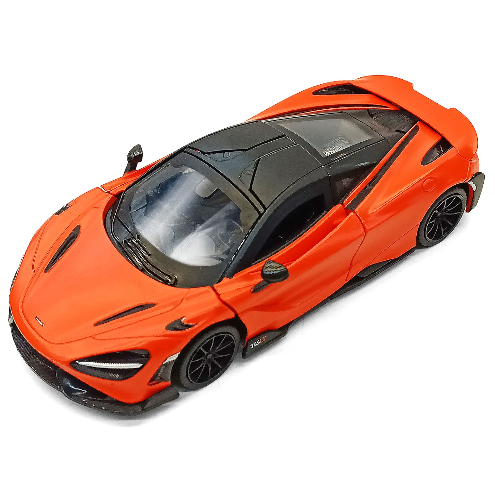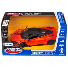 Bilen er en realistisk model af McLaren 765LT med et kraftfuldt og aerodynamisk design, der gør legen mere levende og spændende. De skarpe linjer og sportslige detaljer giver et autentisk udtryk, som gør det sjovt for barnet at lege og udforske bilen. Den har også lys- og lydeffekter samt døre, der kan åbnes, hvilket gør legeoplevelsen endnu mere realistisk og engagerende.
