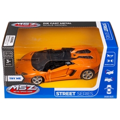 Bilen er en realistisk model af Lamborghini Aventador med et kraftfuldt og aerodynamisk design, der gør legen mere levende og spændende. De skarpe linjer og sportslige detaljer giver et autentisk udtryk, som gør det sjovt for barnet at lege og udforske bilen. Den har også lys- og lydeffekter samt døre, der kan åbnes, hvilket gør legeoplevelsen endnu mere realistisk og engagerende.