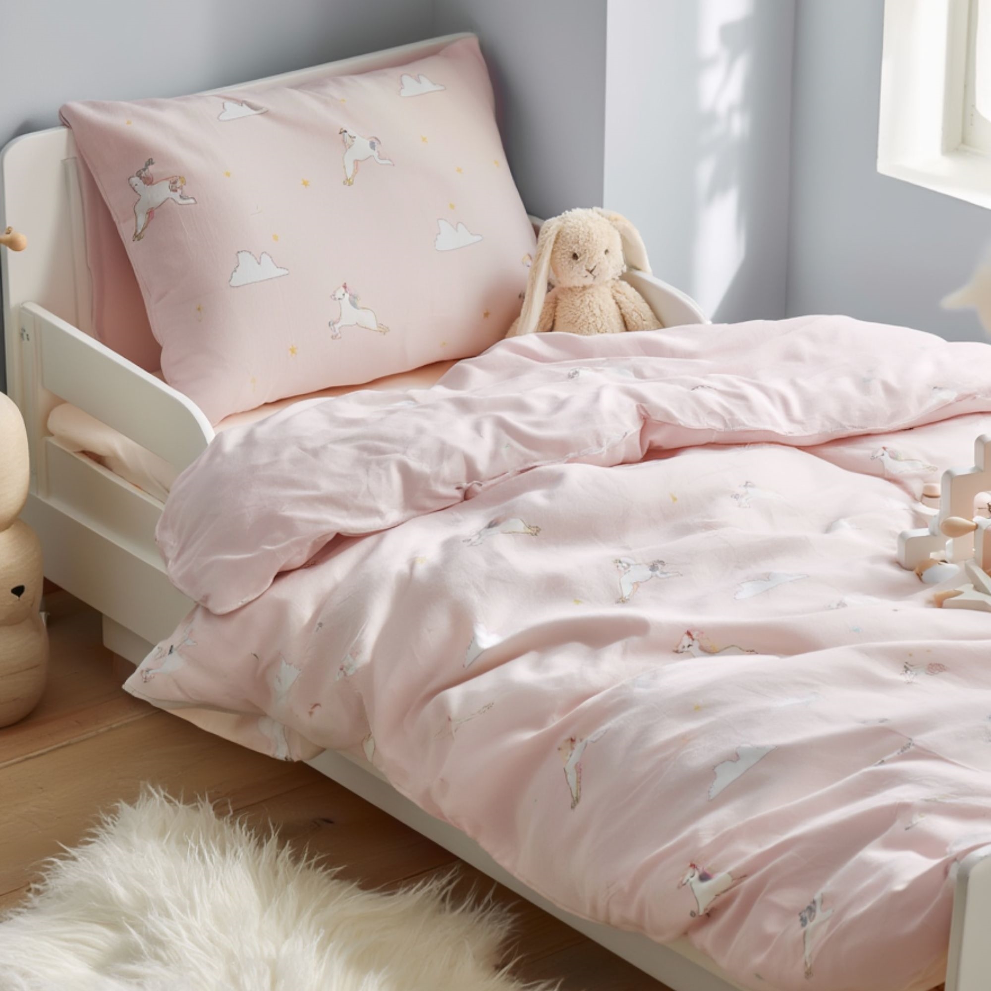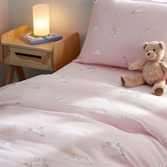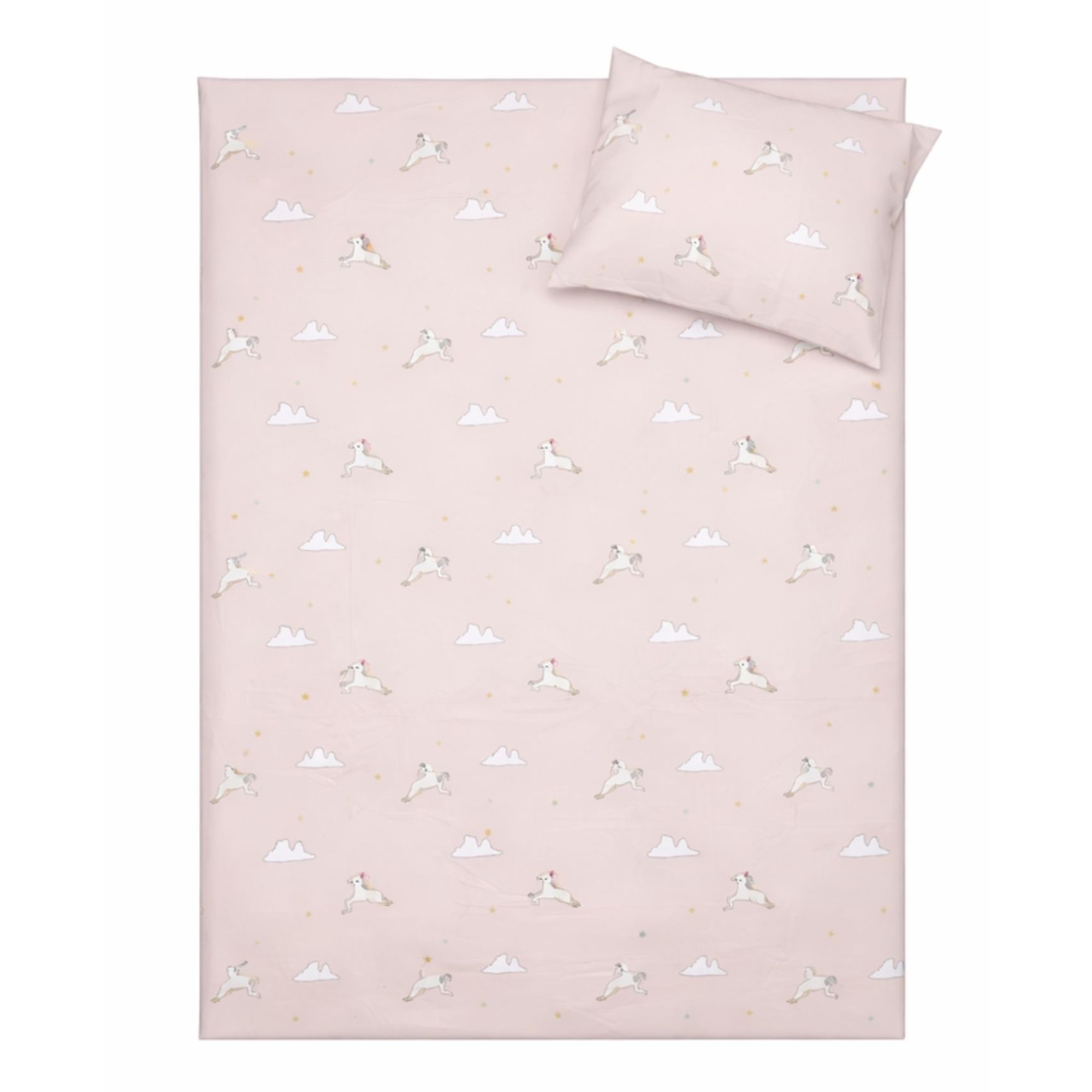 By Mats junior sengetøj 100x140 cm - lyserød med enhjørninger og skyer