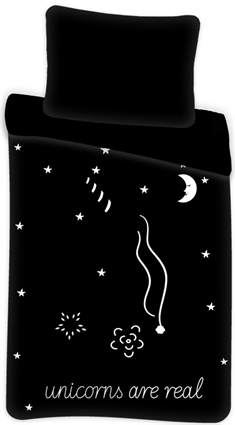 Forside » Sengetøj » Børne sengetøj Enhjørning sengetøj - 140x200 cm - Selvlysende sengetøj med enhjørning - 100% bomulds sengesæt Selvlysende Licens 199,95DKK På lager Trustpilot Antal Læg i kurv Se mere fra: Licens Artikelnummer: 1354-1 Har du spørgsmål til produktet? Sengetøj - Unicorn selvlysende100% bomuld140x200 cm Dynebetræk: 140x200 cm Pudebetræk: 60x63 cm Materiale: 100% bomuld Motiv: Unicorn selvlysende effekt sengesæt Design: 2 i 1 - forside med motiv. Bagside med stjerner Lukning: Dyne med knapper og pudebetræk med overlap Vask: 60° Tørretumbling: Ja Tåler strygning: Ja Certificering: STANDARD 100 by OEKO-TEX® ( 2012KP0016) Elsker du unicorns, eller kender du nogen der gør? Så vil dette sengesæt være helt perfekt! Sengesættet er utrolig flot designet, med motiv af en stor unicorn der er omgivet af regnbuer, blomster og stjerner. Under motivet står denne tekst skrevet "Unicorns are real" - Men sættet kan mere end blot at være flot, for når lyset slukkes har sengesættet en fortryllende effekt med "Glow in the dark" som lyser tegningen op i mørket. Kort sagt, et sæt sengetøj alle piger vil elsker! Se vores store udvalg af tilbehør til børneuniverset For barnet er sengen et trygt sted. Alle elementerne skal til sammen skabe skønne og dejlige omgivelser for barnet at finde ro i. Hos os kan du finde alt tilbehør til sengen, som er med til at skabe det rette sove miljø for dit barn. Her kan du finde lækre og bløde kvalitets lagner Læs alt om sengetøj i vores sengetøjs guide her Tilbage til Børne sengetøj