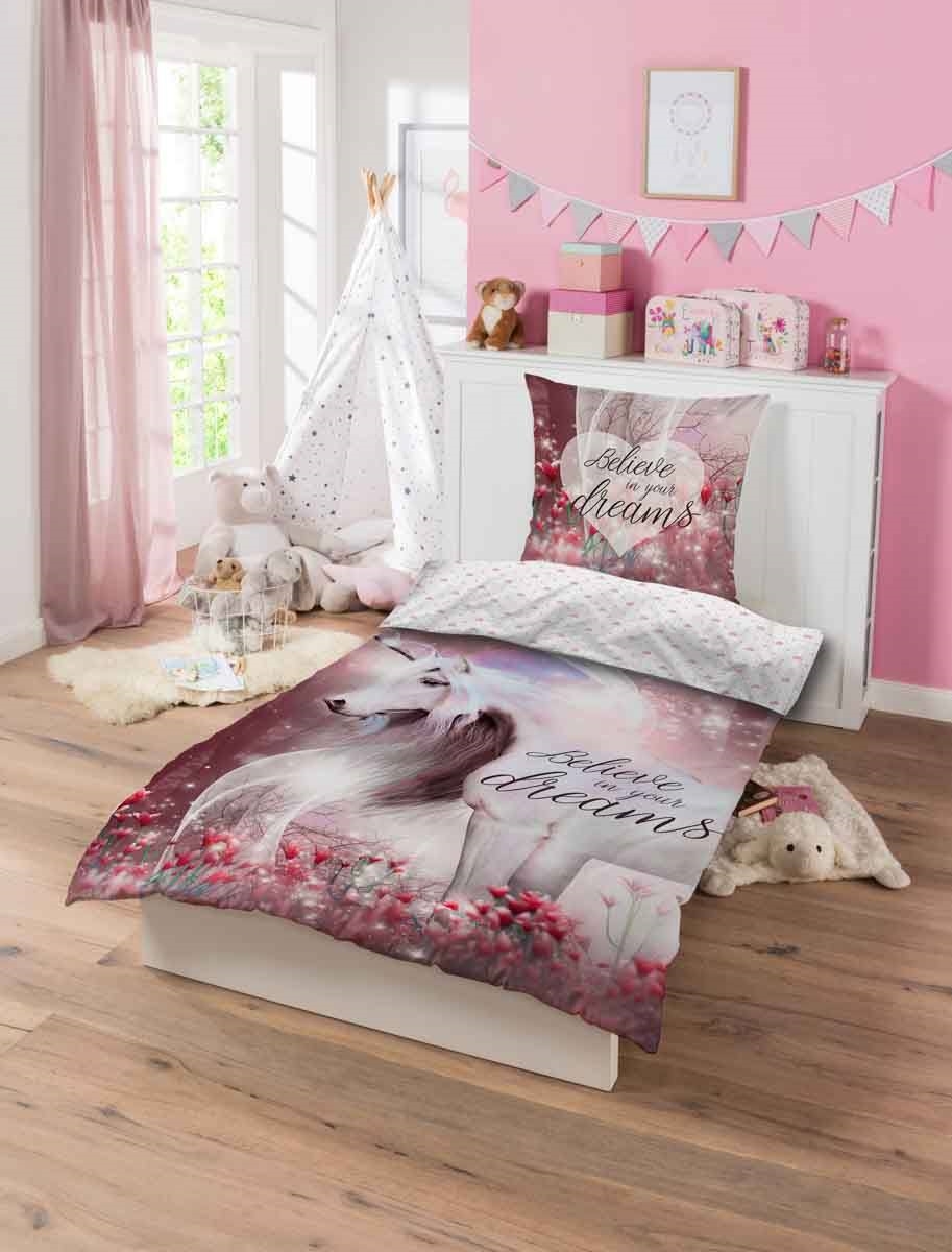 Forside » Sengetøj » Børne sengetøj » Børne sengetøj 140x200 cm Enhjørning sengetøj - 140x200 cm - Believe in your dreams - Vendbart design med unicorn dynebetræk - 100% bomulds sengesæt Licens 199,95DKK På lager Trustpilot Antal Læg i kurv Se mere fra: Licens Artikelnummer: 99269-1 Læs vores sengetøjsguide Se vores store udvalg af lagner Se vores store udvalg af dyner 140x200 Har du spørgsmål til produktet? Populært design Blødt og lækkert bomuldOEKO-TEX® certificeret Dynebetræk: 140x200 cm Pudebetræk: 60x63 cm Materiale: 100% bomuld Farve: Lyserøde nuancer Motiv: Venbart design - forside med Unicorn motiv, bagside med all-over print af hjerter Lukning: Dyne med knapper og pudebetræk med overlap Vask: 60° Tørretumbling: Ja Tåler strygning: Ja Certificering: STANDARD 100 by OEKO-TEX® (2018OK1545). Din garanti for at produktet er fri for sundhedsskadelig kemi. Sengetøj med et smukt motiv af en enhjørning og citatet: Believe in your dreams, samt en romantisk bagside med fine små hjerter. Det bløde sengesæt produceret i 100% bomuld er både åndbart og absorberende, og med god sovekomfort. Et slidstærkt bomulds børnesengesæt, som gør børneværelset lidt mere spændende. Et romantisk stilet sengesæt til den lille heste ildsjæl. Et smukt motiv af en hvid enhjørning, som skaber magi til børneværelset. Motivet er supplementeret af et citat: Believe in your dreams, som giver sengetøjet sit final touch. Sengesættet er også vendbart med to forskellige sider, hvor bagsiden har et allover print af fine små lyserøde hjerter. Sengesættet er produceret i 100% blød bomuld som gør sættet slidestærkt og med høj åndbarhed. Den rene bomuldskvalitet giver et lækkert og blødt sengesæt, der er med til at fremme en sovekomfort for barnet. Bomuldssengetøj kan vaskes ved 60° i vaskemaskinen, som er også et med til at holde et et højt hygiejne niveau. Sengetøjet er yderligere fremstillet med OEKO-TEX certificeret, hvilke er din garanti for at sættet er fri for skadelig kemi. Gå på udkig efter favoritterne og meget mere, i vores store udvalg af tilbehør til børneuniverset For barnet bør sengen være et trygt sted og alle elementerne skal til sammen skabe bløde og dejlige omgivelser for barnet at finde ro i. Brug derfor gerne barnets interesser, til at skabe et trygt soverum for barnet. Hos os kan du finde et stort udvalg af tilbehør til sengen og børneværelset, lige fra lagner til dyner, puder, sengetøj og meget mere, og massere af produkter med alle børnenes favoritter på. Alt sammen elementer som kan være med til at skabe det rette sove miljø og værelse til dit barn. Her kan du finde lækre og bløde kvalitets lagner Tilbage til Børne sengetøj 140x200 cm