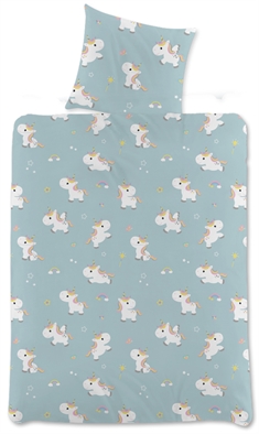 Forside » Sengetøj » Børne sengetøj » Børne sengetøj 140x200 cm Enhjørning sengetøj - 140x200 cm - Unicorn og regnbue børnesengetøj - Vendbart sengesæt i 100% bomuld Licens 199,95DKK På lager Trustpilot Antal Læg i kurv Se mere fra: Licens Artikelnummer: 11583-1 Læs vores sengetøjsguide Se vores store udvalg af lagner Se vores store udvalg af dyner 140x200 Har du spørgsmål til produktet? God åndbarhed og let vedligeholdelseBlødt og lækkert bomuldOEKO-TEX® certificeret Dynebetræk: 140x200 cm Pudebetræk: 60x63 cm Materiale: 100% blød bomuld Farve: Lyseblå Motiv: Unicorn Design: Vendbar - Forside med enhjørninger, stjerner og regnbuer, bagside med all-over print af mini motiver Lukning: Dyne med knapper, pudebetræk med overlap Vask: 60° Tørretumbling: Ja Tåler strygning: Ja Certificering: STANDARD 100 by OEKO-TEX® (M1YLGG4D8 AITEX). Din garanti for at produktet er fri for sundhedsskadelig kemi. Sengetøj med et skønt motiv af enhjørninger på en rolig lyseblå farve. Det bløde sengesæt produceret i 100% bomuld er både åndbart og absorberende, og med god sovekomfort. Et slidstærkt bomulds børnesengesæt, som gør børneværelset lidt mere spændende. Et rigtig flot, lyseblåt sæt sengetøj med motiv af regnbuer, enhjørninger og stjerner på forsiden og mini motiver på bagsiden. Et super sødt sengesæt til de glade unicorn elskere. Det er altid en god ide at gøre brug af barnets interesser, hvis man ønsker at skabe et tryggere og mere spændende sovemiljø til sit barn. Sengesættet er produceret i 100% blød bomuld som gør sættet slidestærkt og med høj åndbarhed. Den rene bomuldskvalitet giver et lækkert og blødt sengesæt, der er med til at fremme en sovekomfort for barnet. Bomuldssengetøj kan vaskes ved 60° i vaskemaskinen, som er også et med til at holde et et højt hygiejne niveau. Sengetøjet er yderligere fremstillet med OEKO-TEX certificeret, hvilke er din garanti for at sættet er fri for skadelig kemi. Gå på udkig efter favoritterne og meget mere, i vores store udvalg af tilbehør til børneuniverset For barnet bør sengen være et trygt sted og alle elementerne skal til sammen skabe bløde og dejlige omgivelser for barnet at finde ro i. Brug derfor gerne barnets interesser, til at skabe et trygt soverum for barnet. Hos os kan du finde et stort udvalg af tilbehør til sengen og børneværelset, lige fra lagner til dyner, puder, sengetøj og meget mere, og massere af produkter med alle børnenes favoritter på. Alt sammen elementer som kan være med til at skabe det rette sove miljø og værelse til dit barn. Her kan du finde lækre og bløde kvalitets lagner Tilbage til Børne sengetøj 140x200 cm