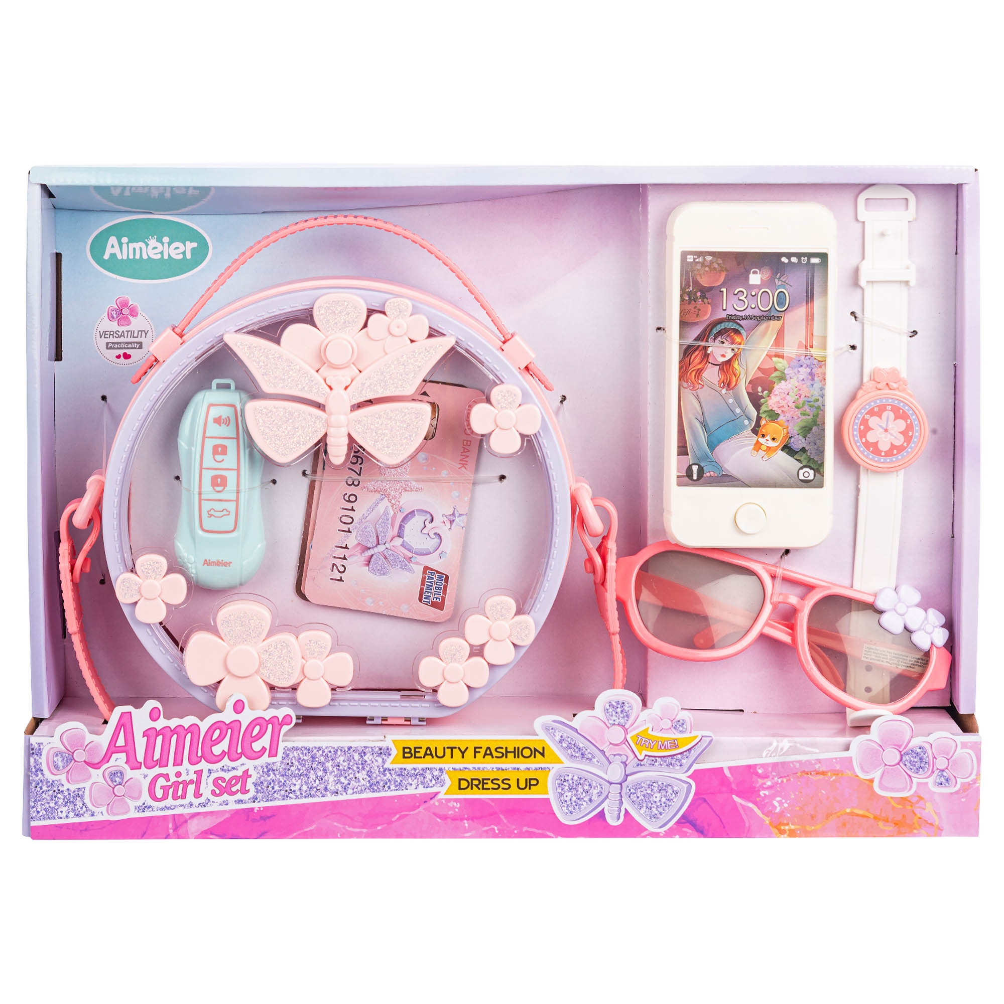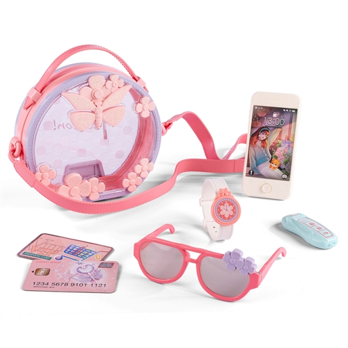Fashion taske med tilbehør - Mobiltelefon med lys og lyde, ur, briller, bilnøgle og kort