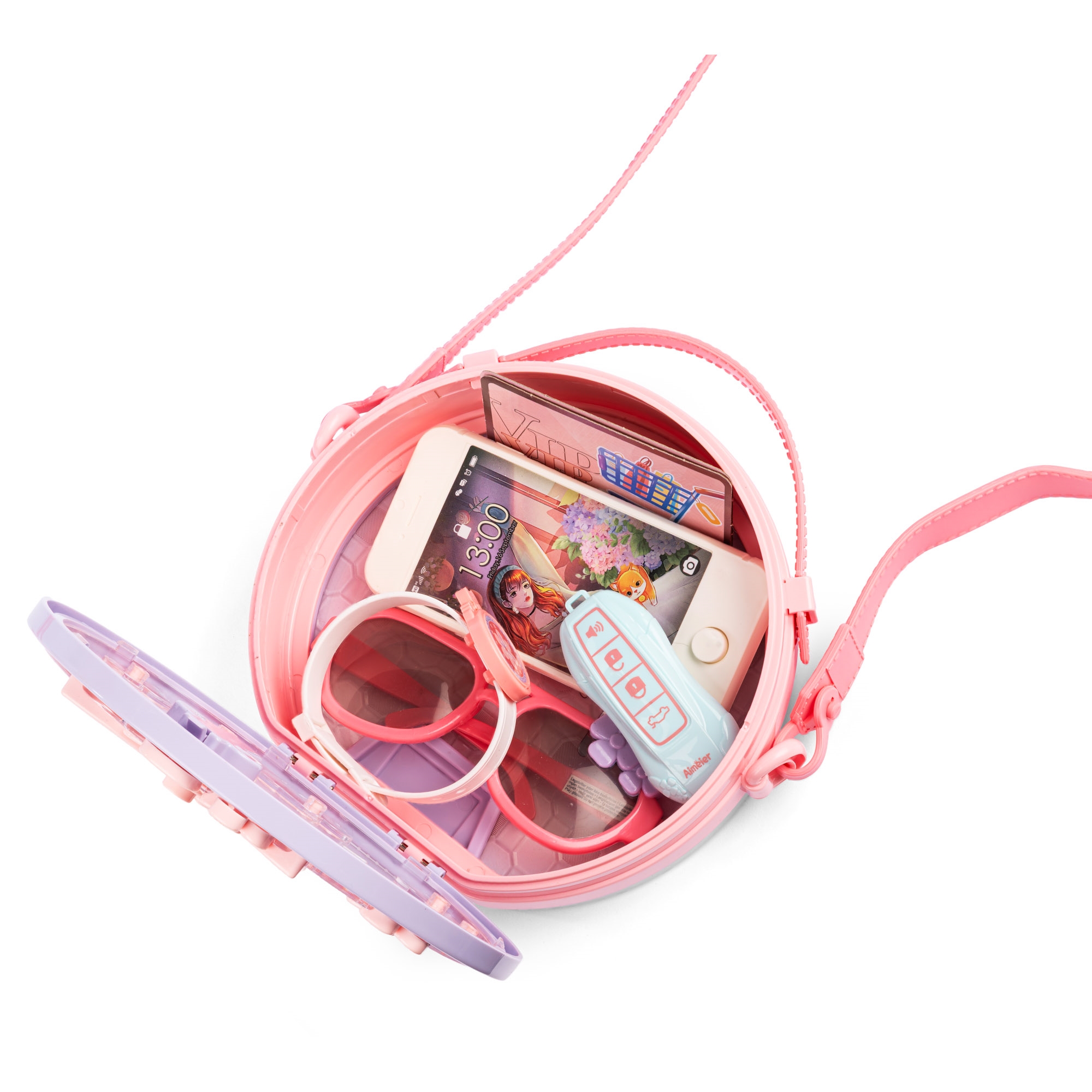 Fashion taske med tilbehør. Smart håndtaske med gennemsigtig front, mobiltelefon med lys og lyde, ur, briller, bilnøgle og kort. Inkl. 2 stk. AAA-batterier.
