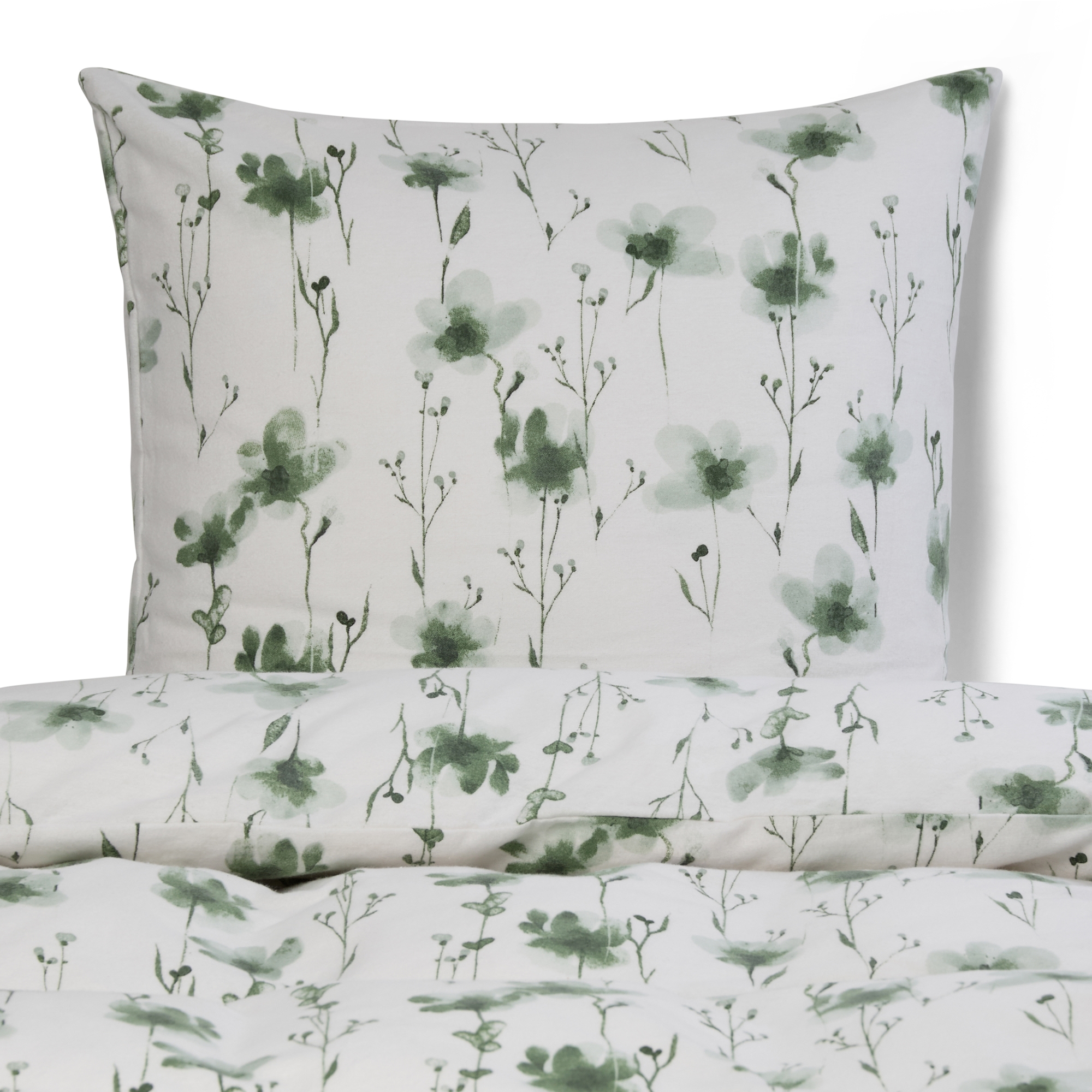Forside » Sengetøj Flonel sengetøj 140x200 cm - Blødt blomstret sengesæt - Flower Green - 100% bomuldsflonel - By Night sengelinned Spar50% By Night 499,95249,95DKKSpar 250,- På lager Trustpilot Antal Læg i kurv Se mere fra: By Night Artikelnummer: 254-1 Har du spørgsmål til produktet? Åndbart og behageligtEkstra blødt og varmtSlidstærkt bomuld Dynebetræk: 140x200 cm Pudebetræk: 1 stk. á 60x63 cm Materiale: 100% bomuldsflonel Vævning: 200TC (Thread count = antal tråde pr. kvadrattomme) Farve: Hvid med grønne blomster Design: Flower Green Brand: By Night Lukning: Dyne- og pudebetræk med indvendig lynlås Vask: 60° Tørretumbling: Ja Tåler strygning: Ja Certificering: STANDARD 100 by OEKO-TEX® (20182KO658). Din garanti for at produktet er fri for sundhedsskadelige stoffer. Ekstra blødt og lækkert sengesæt lavet af 100% bomuldsflonel. Med sengetøjet her kan let du kombinere komfort og decore, for udover at være en lun og behagelig tilføjelse til din samlede sovekomfort, så har sengesættet også et flot blomster design i rolige farver. Flonel sengetøj fra By Night er fremstillet af 100% bomuldsflonel, som er kendt for sin bløde, let opkradsede og vamsede overflade. Bomuldsfibrene er børstet på overfladen hvilket skaber en ekstra blød og vamset overflade. Denne overflade giver flonel sengetøjet dets karakteristiske og velkendte blødhed og varme, som er med til at skabe en dejlig lun og behagelig sove oplevelse. Især på kølige nætter er sengetøjet en favorit, da 100% bomuldsflonel er åndbart og samtidig god til at holde på varmen. By Night flonel sengelinned er velegnet til brug året rundt og findes i forskellige flotte designs og farver for at matche enhver smag og indretning. Dyne- og pudebetræk lukkes med indvendig lynlås. Køb let matchende pudebetræk til dine ekstra puder her Frisk dit soveværelse op med dette smukke og luksuriøse sengesæt. Udnyt samtidig chancen for at øge din søvnkomfort ved at tilføje et nyt, blødt kvalitetslagen. Du finder vores store sortiment af kvalitets lagner her By Night er kendetegnet af dansk design - de giver dig behagelige sovekomponenter til dit nattemiljø i allerhøjeste kvalitet. By Night producerer sengetøj og lagner til hele familien og lægger stort vægt på tidens trends, således at produktionen altid indebærer moderigtige farver og designs. Tilbage til Sengetøj